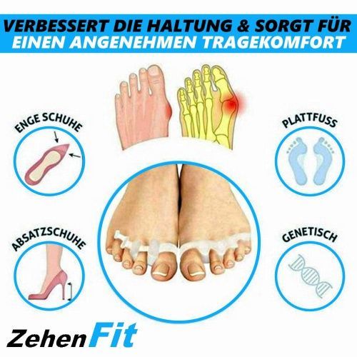 ZehenFit Zehenspreizer Schiene Hallux Valgus Bandage Zehentrenner [2 Paar]