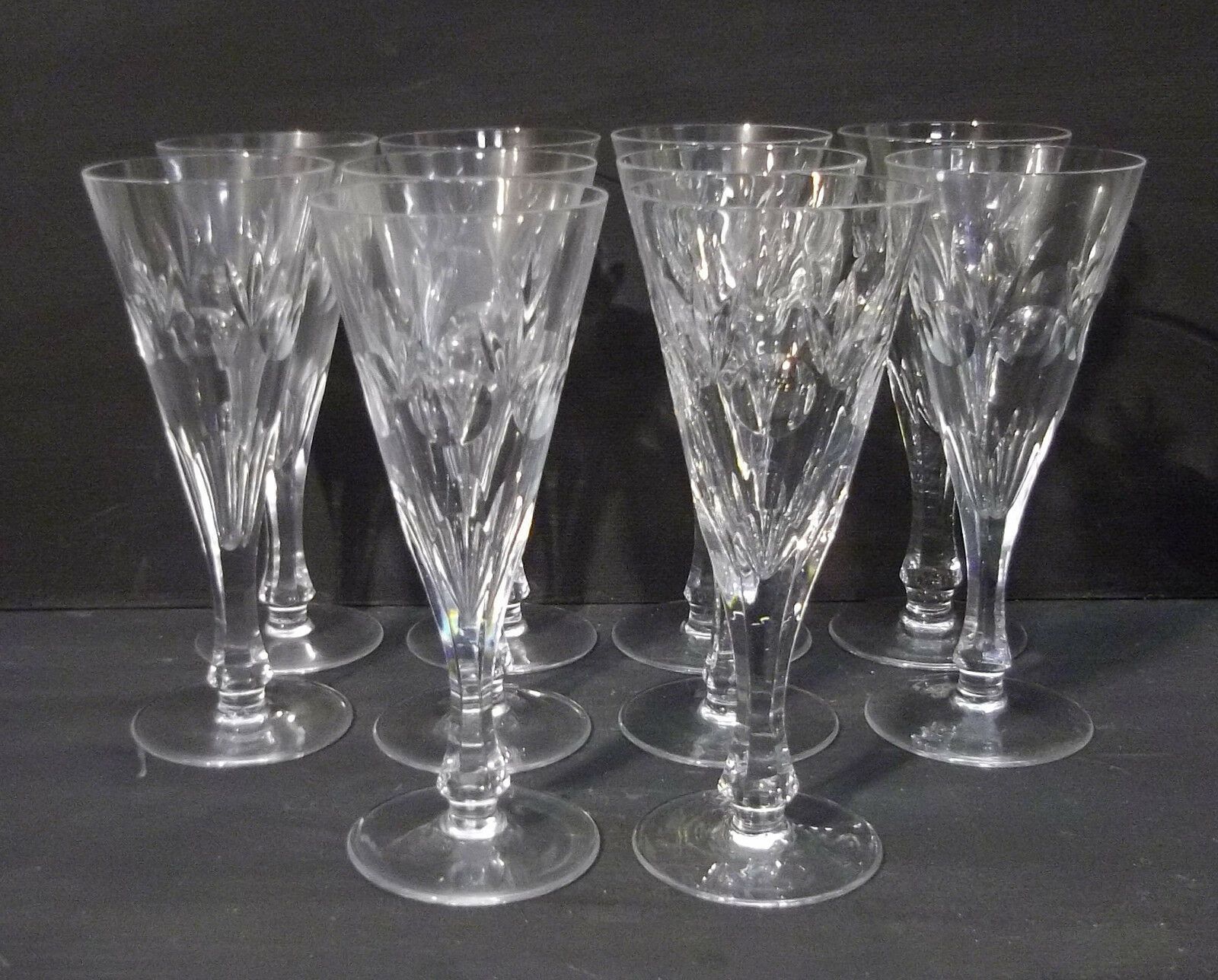 Zehn Sektgläser um 1940. Sehr schöner Schliff. Ohne jeden Abplatzer. Ein Zehnersatz ist selten! Maße: H 18 cm. Antikes am Deich - Inh: Oliver Kipp-Trense G M T Sprache erkennen Afrikaans Albanisch Arabisch Armenisch Aserbaidschanisch Baskisch Bengalisch Bosnisch Bulgarisch Burmesisch Cebuano Chichew