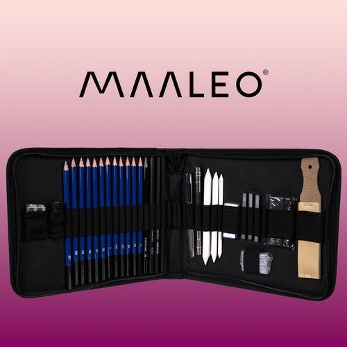 Zeichen Set Skizzenset 32 tlg Bleistifte Kohle Radierer Künstler Zubehör Etui