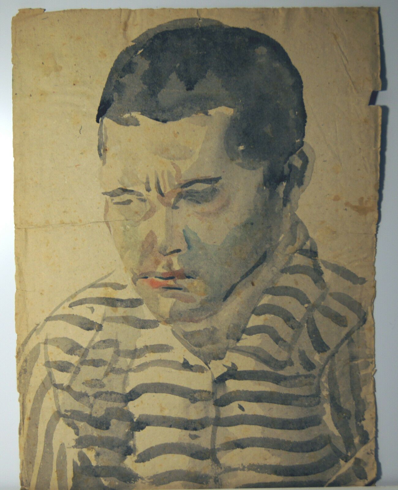 Original-Bleistift-Zeichnung und Aquarell von Peter Kai . Motiv: 1. Männerporträt, 2. Sträfling. Zwei Bilder auf einem Blatt! Signiert: Peter Kai, Nov.40 . Maße H 2, B 31 cm. Das Blatt kommt in einer Rollenverpackung! Antikes am Deich - Inh: Oliver Kipp-Trense