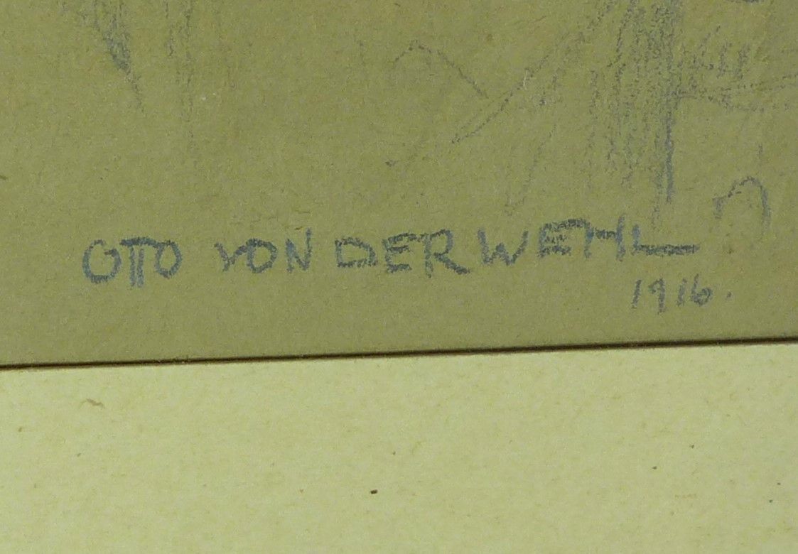 Zeichnung Gouache Radierung "Otto von der Wehl" Künstler Infantrist Hessen(?) WK1 W