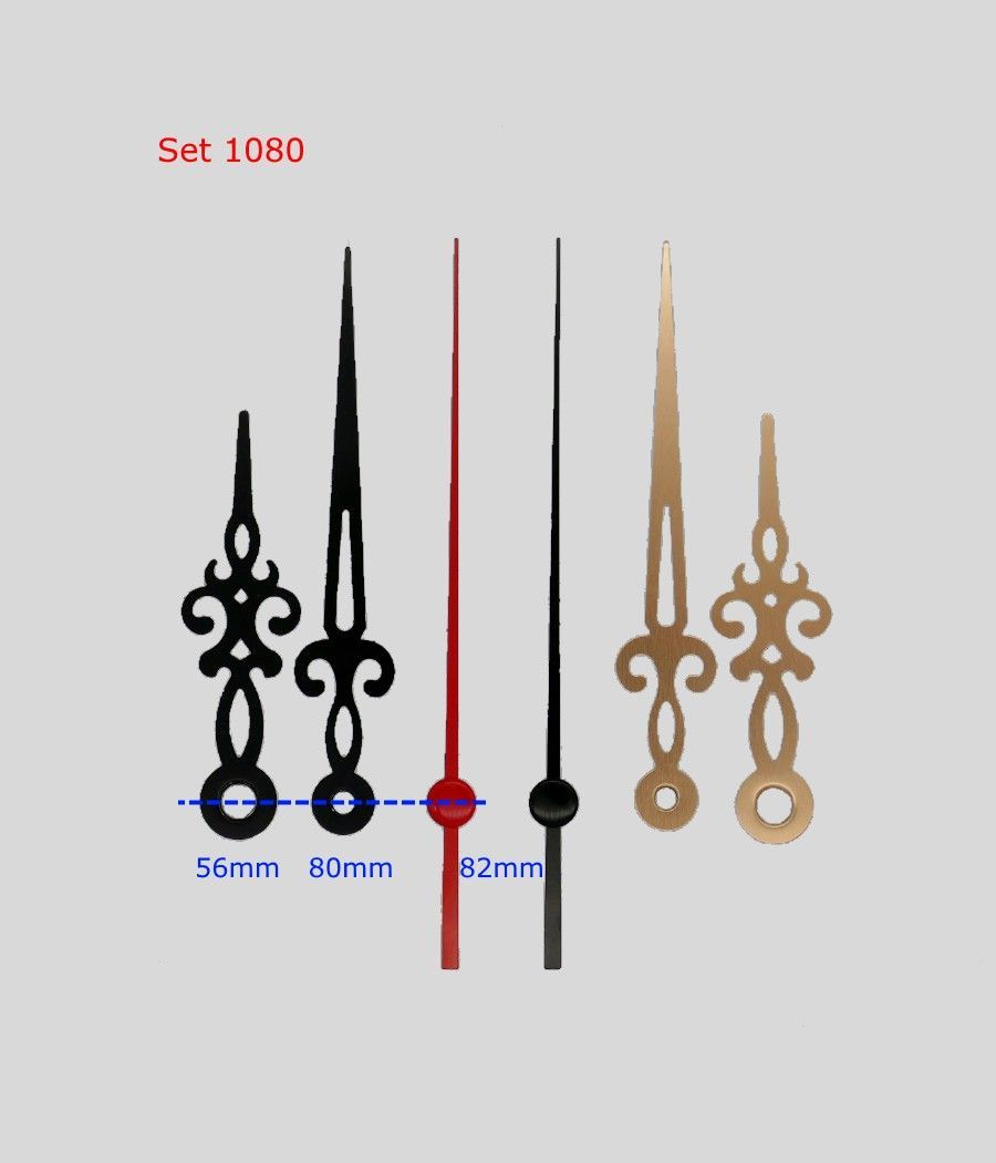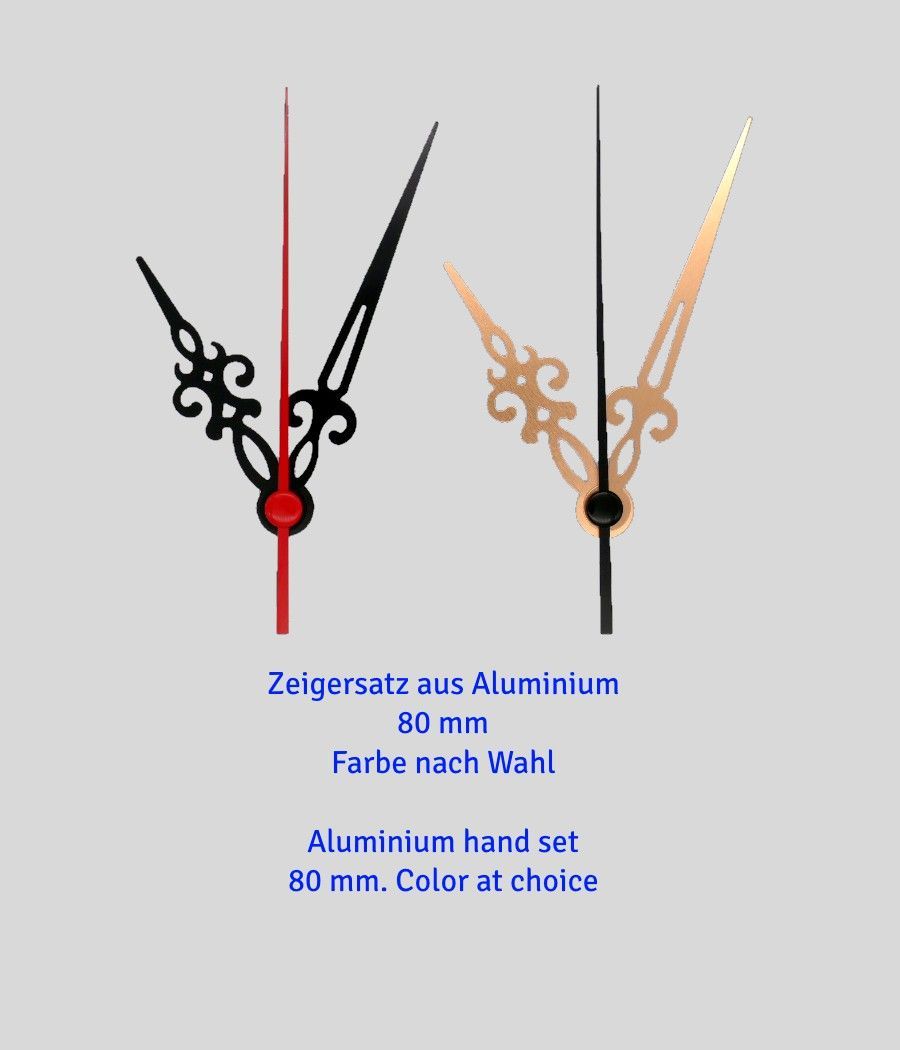 Zeiger Satz 80 mm Alu Metall 8 cm schwarz gold Uhrzeiger Eurolochung f. Wanduhr