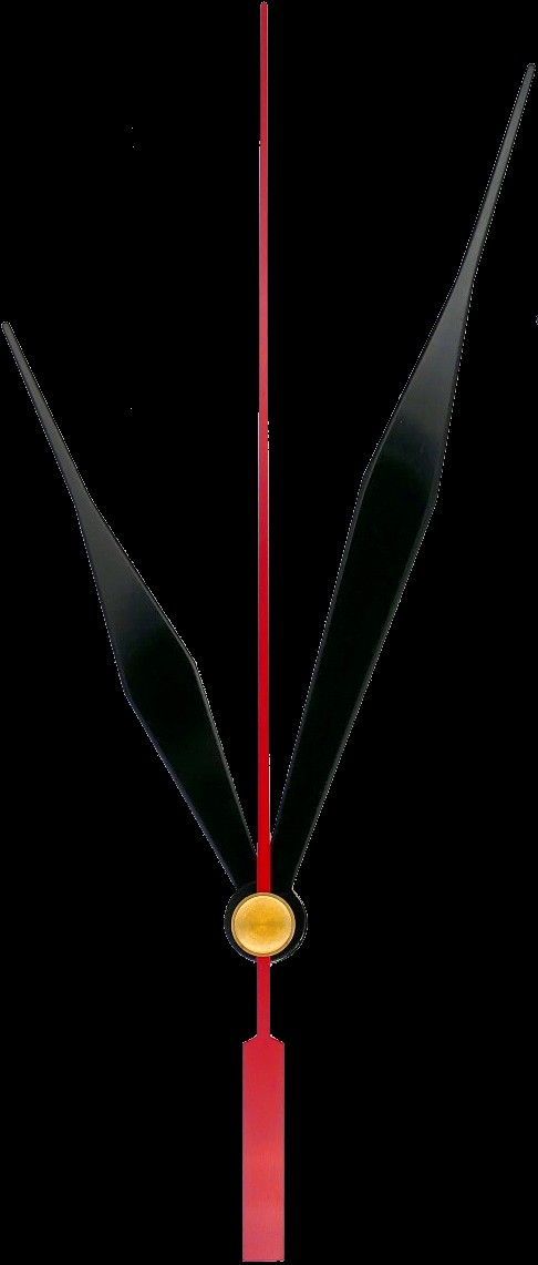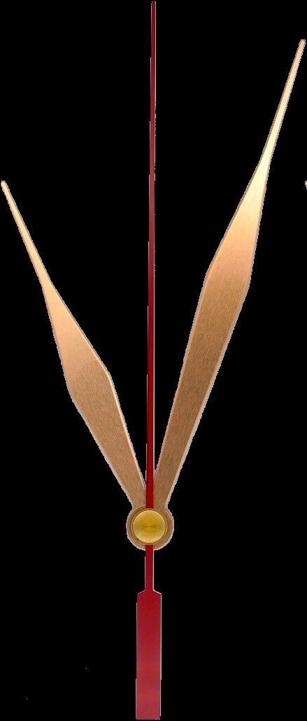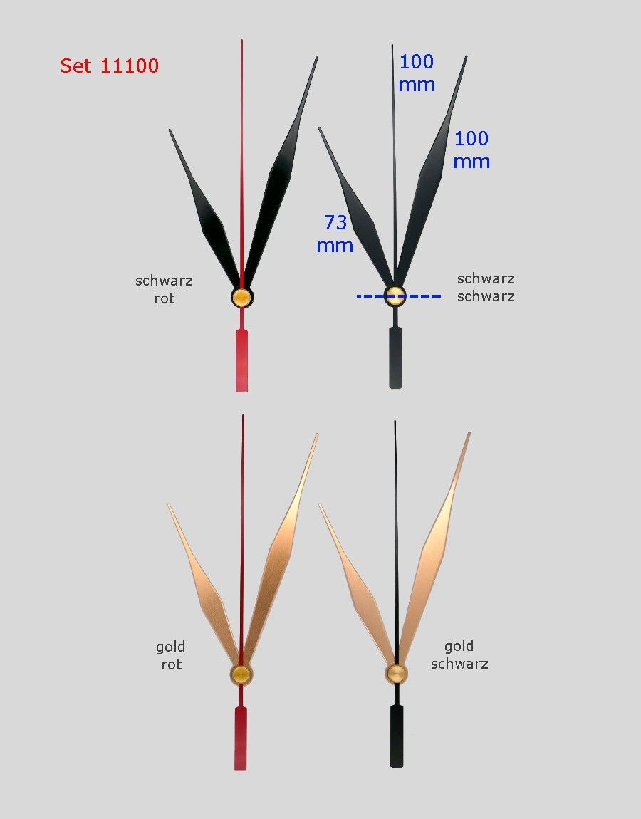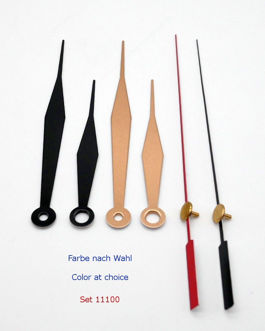 Zeigersatz 10 cm hohe Qualität - Material: Aluminium, mit Schutzfolie - Farbe glänzend, nach Wahl: schwarz oder goldfarbig - Sekundenzeiger: rot oder schwarz Geeignet für Tischuhren, Wanduhren, DIY Uhren, bzw. Uhr-Reparaturen. Passend für alle Quarz Uhrwerke mit s.g. Young-Town shaft (Bild 3) Liefer