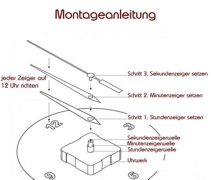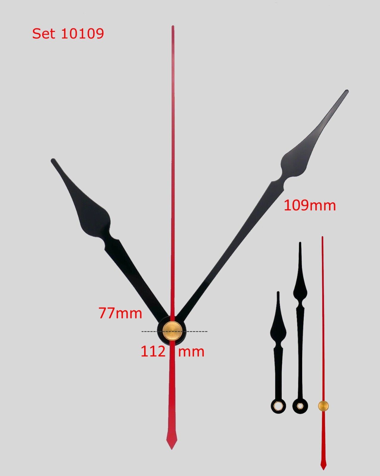 Zeigersatz 110 mm Alu 11 cm f. DIY, Wanduhren schwarz Uhrzeiger Set Eurolochung