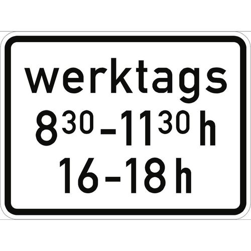 Zeitliche Beschränkung (werktags - h, - h), Textschild, StVO