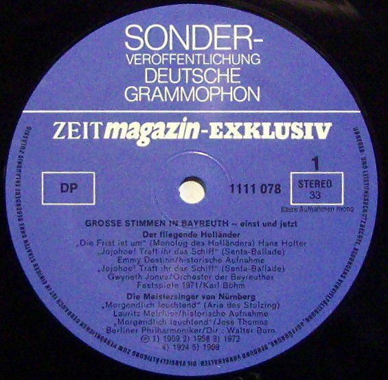 Condition Vinyl Near Mint (NM or M-) Condition Sleeve Very Good (VG) Tracks included: Der Fliegende Holländer I -1. Die Frist Ist Um (Monolog des Holländer) Baritone Vocals : Hans Hotter -2. Jojohoe! Traft Ihr Das Schiff (Senta-Ballade) Soprano Clarinet : Emmy Destinn -3. Jojohoe! Traft Ihr Das Schi