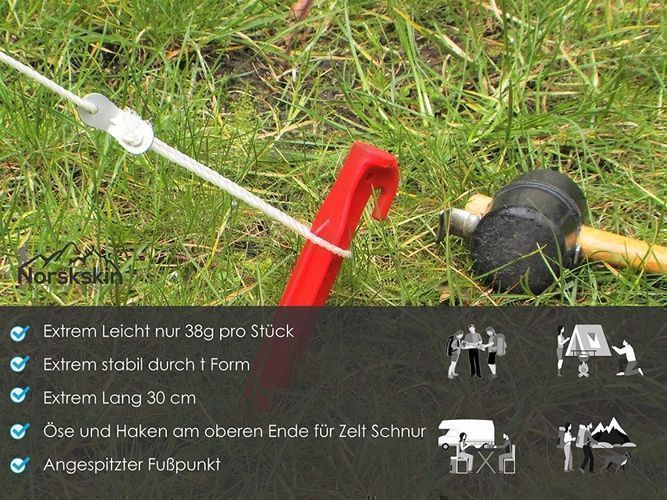 Zelt-Heringe aus Kunststoff 30 cm. 5 Stück Rot Heringe Erdnägel Zeltnägel Zeltpf