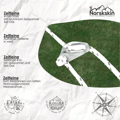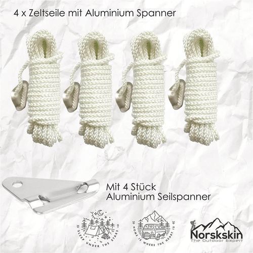 Zeltleinen 4 St a 4 m weiß mit Dreiloch Spanner für Zelt Heringe Abspannleine