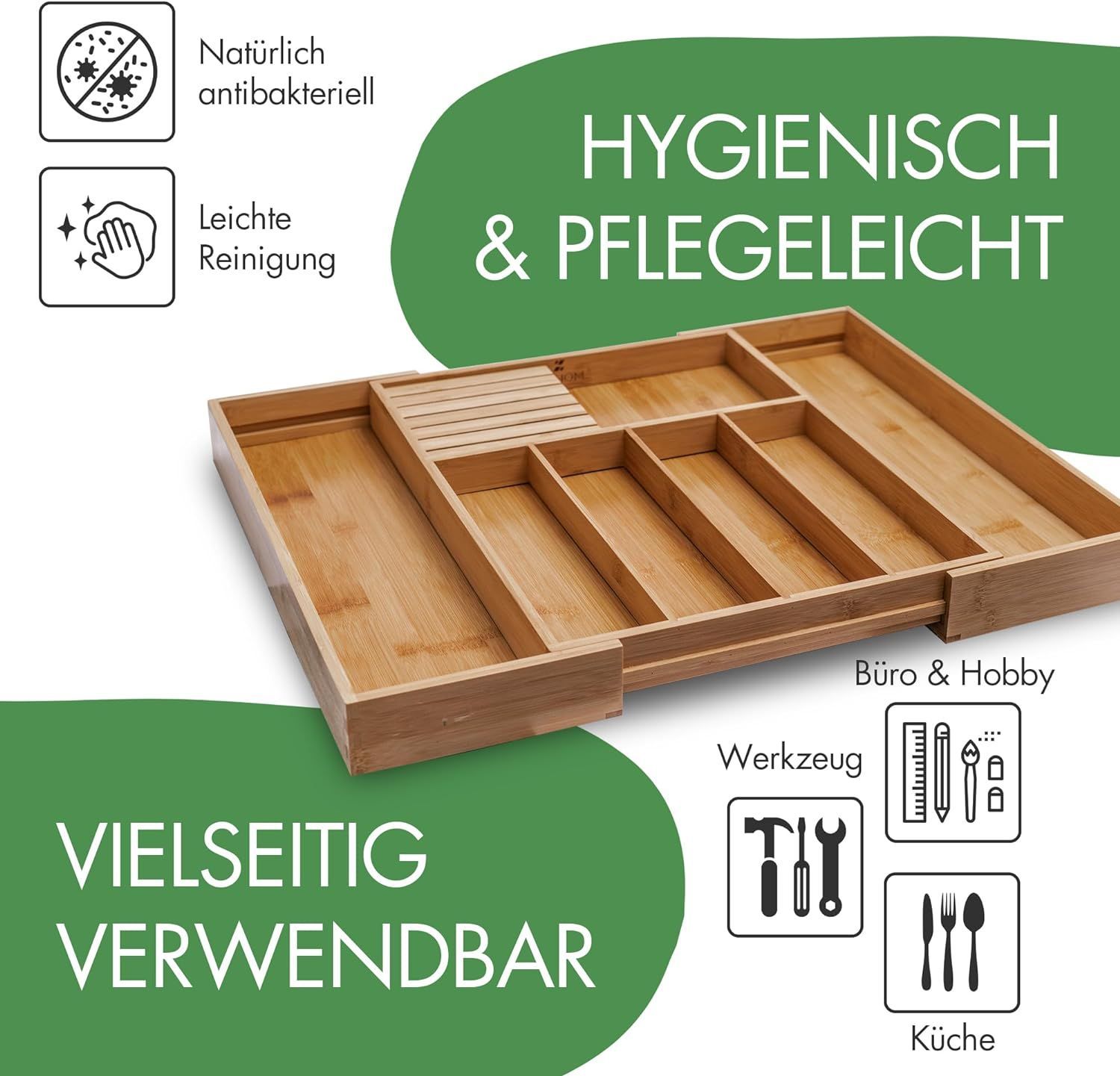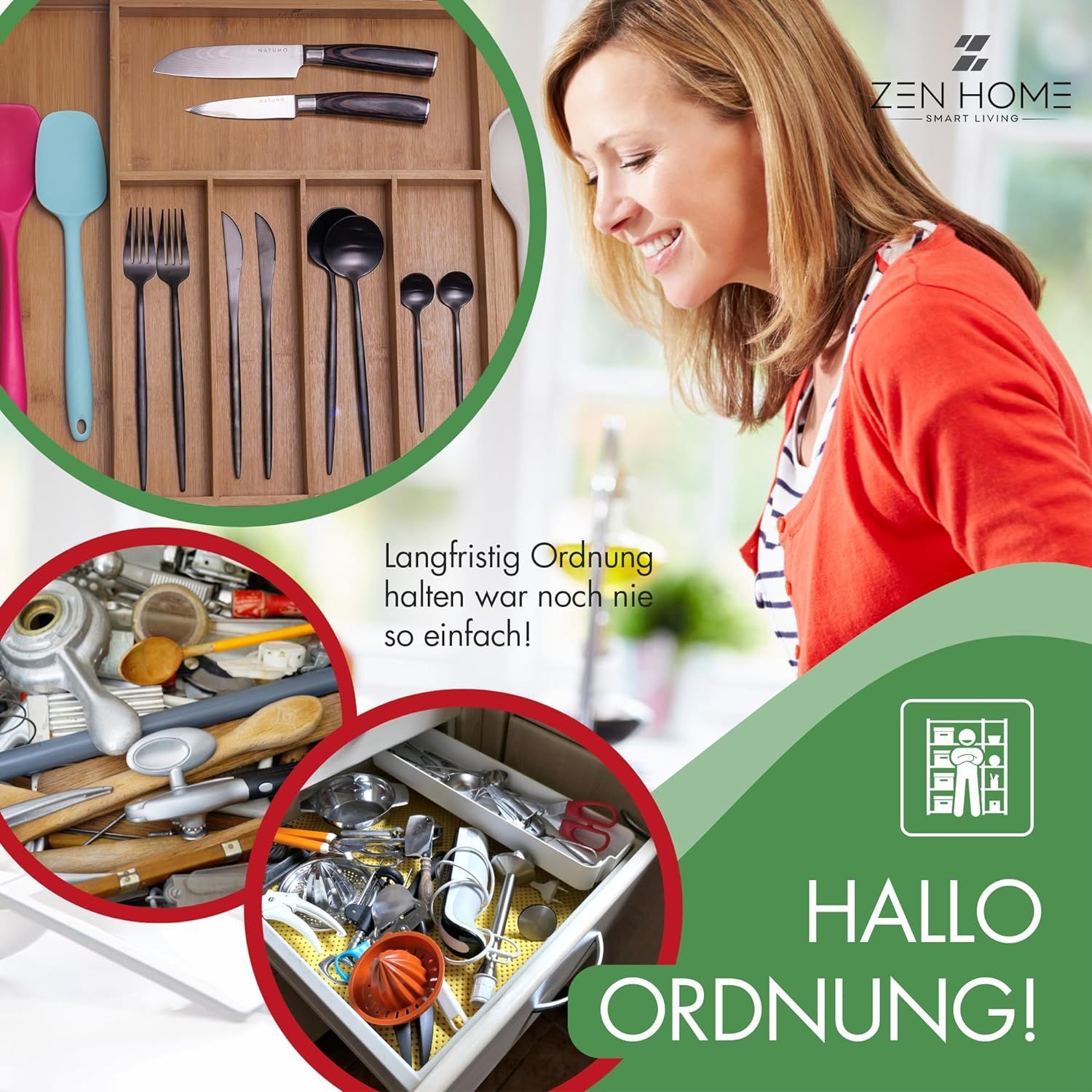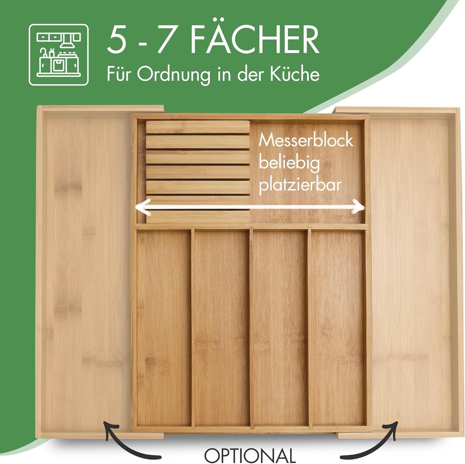 ZEN HOME Bambus Besteckkasten für Schubladen mit Messerblock, ausziehbar 33–55 x