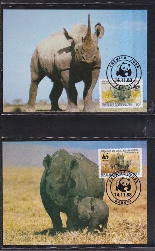 Zentralafrikanische Republik 983 Maximumkarte MiNr. 361-365 WWF Spitzmaulnashorn