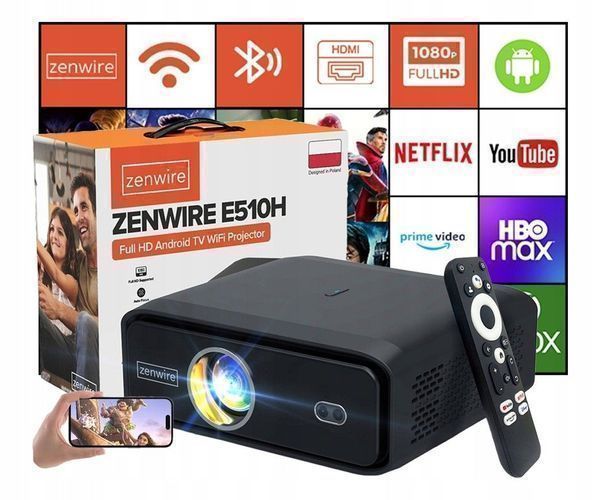 Zenwire E510H Mini Full HD 4K Projektor Android TV 11 WiFi 2.4/5 Ghz 500 Ansi 15000Lm