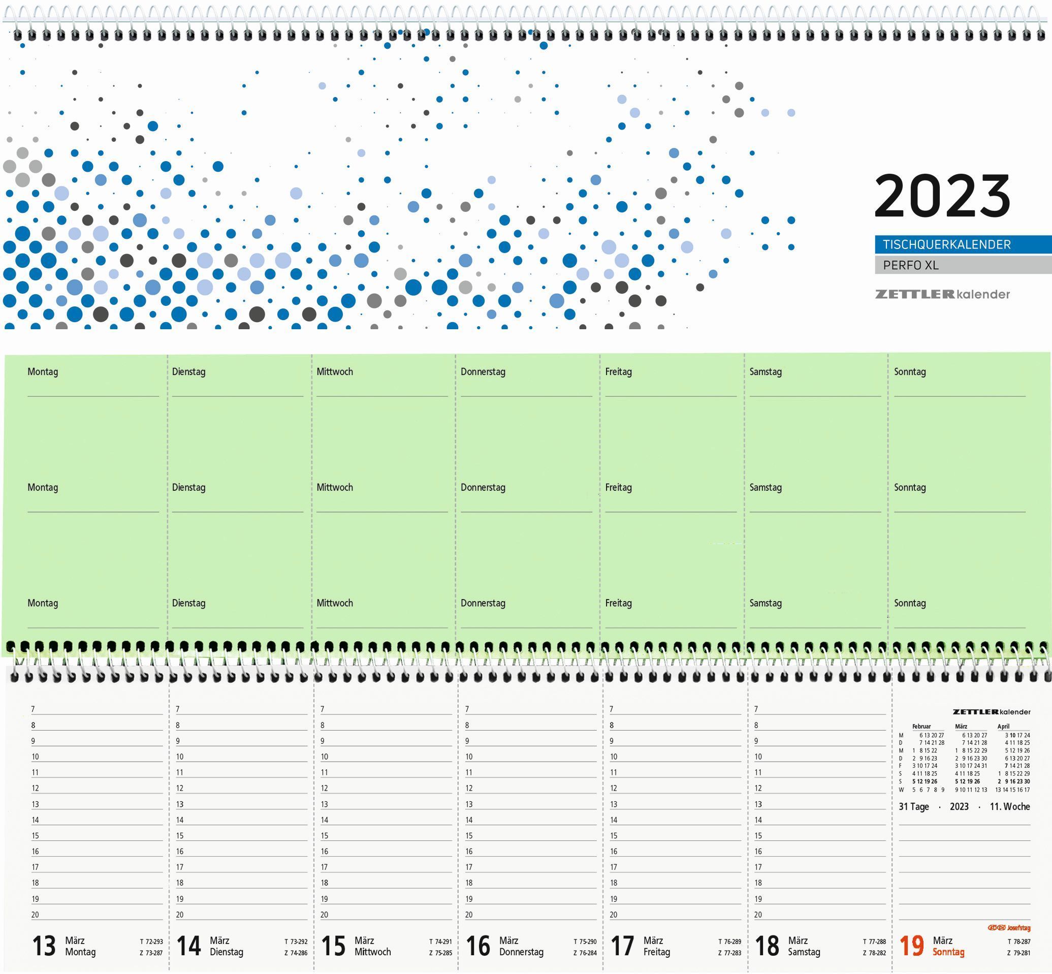 Zettler 136-0015 Tischquerkalender 136 - 1 Woche / 2 Seite, 36 x 10,5 cm, blau