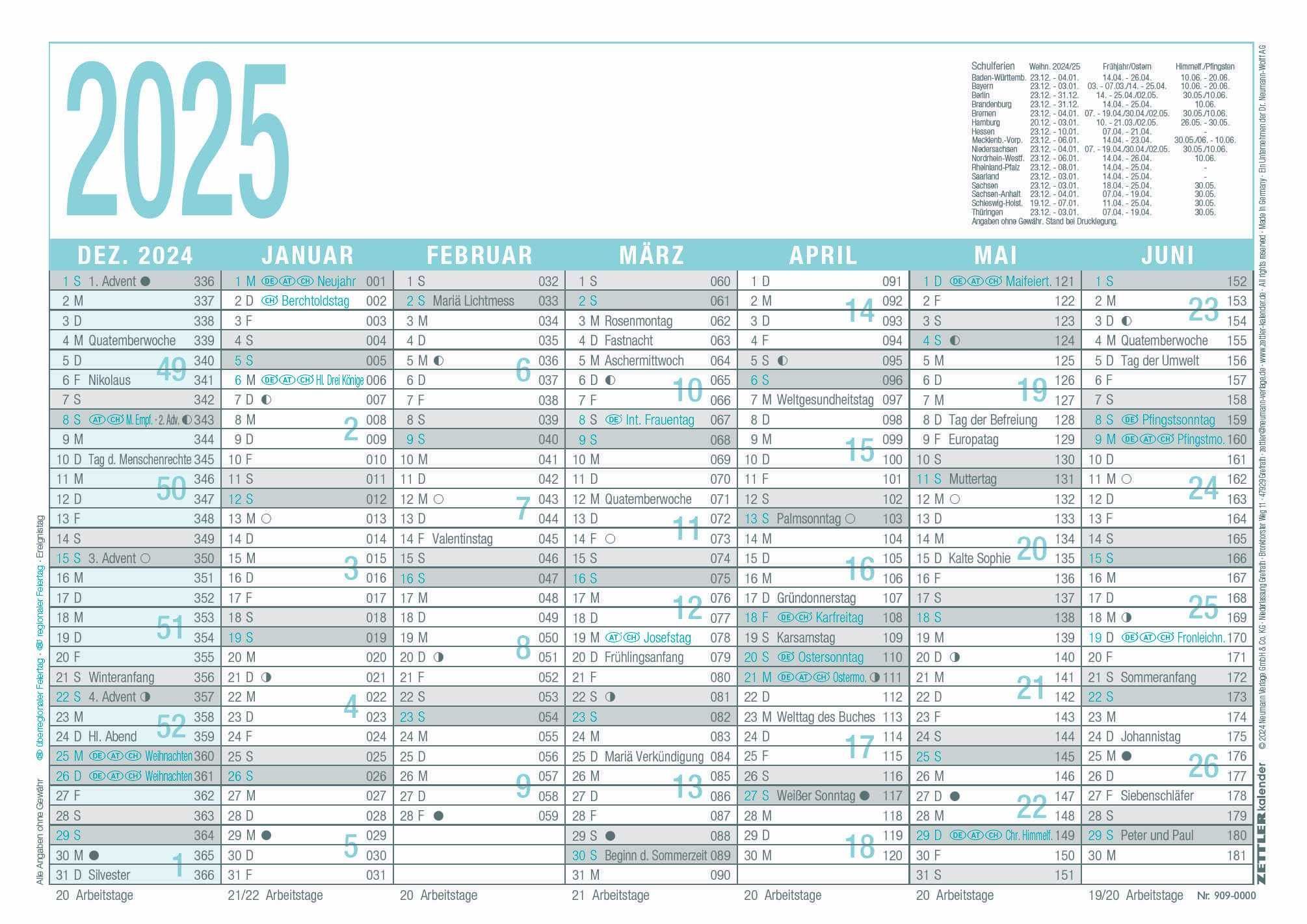 Zettler 602536 Wandkalender - 7 Monate - 1 Seite, A4