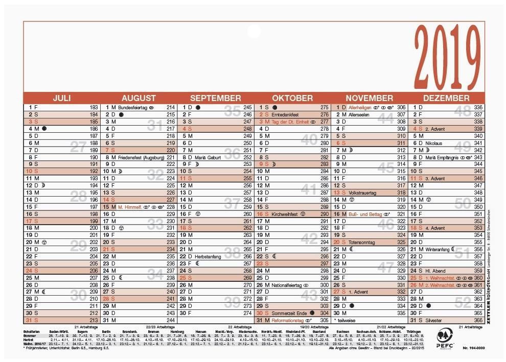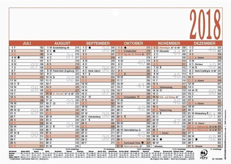 Zettler 904-0000 Tafelkalender - A5 quer, 6 Monate / 1 Seite, Karton