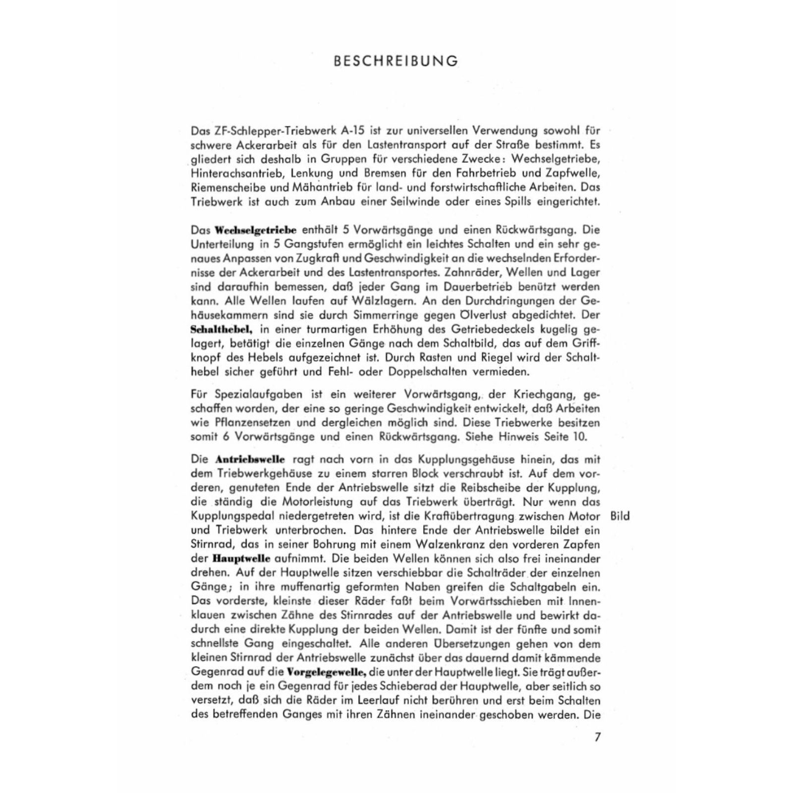 ZF Passau A-15 Traktor Schlepper Wartungs-/Bedienungsanleitung Ersatzteilliste