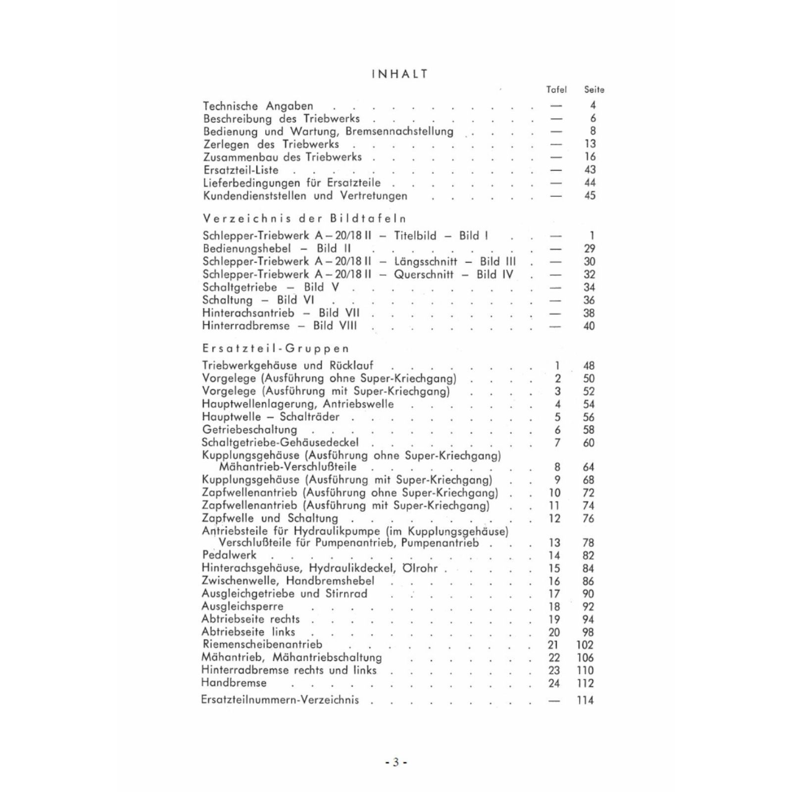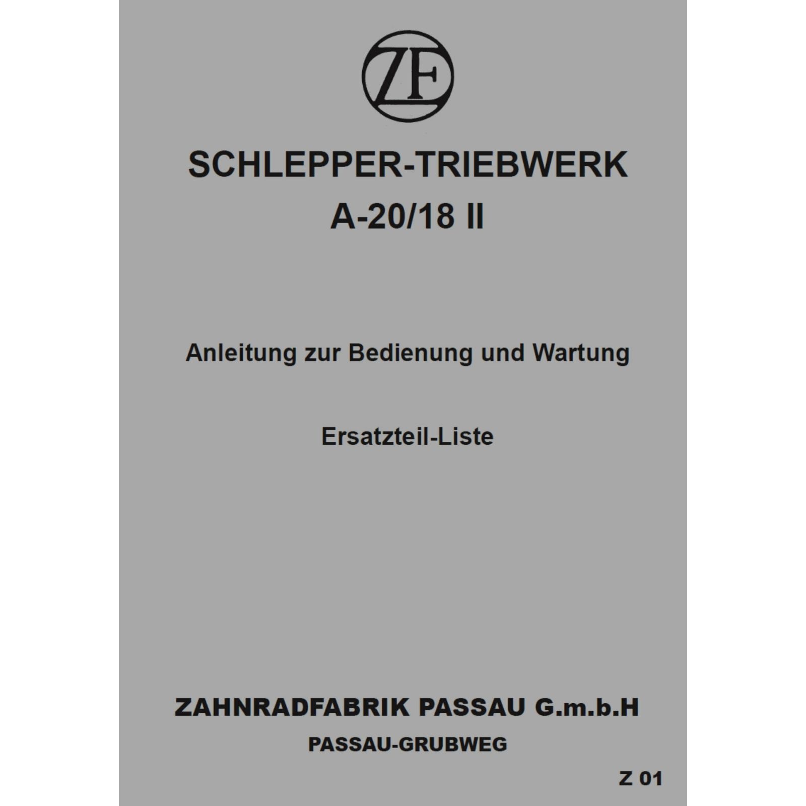 ZF Passau A-20/18 II Traktor Wartung Bedienungsanleitung Ersatzteilliste