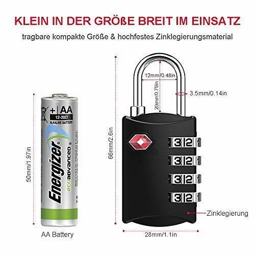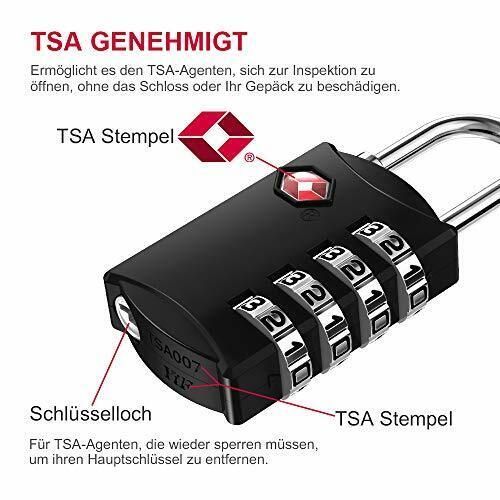 ZHEGE TSA Schloss Kofferschloss 4-Stellig Vorhängeschloss Gepäckschloss Schwarz