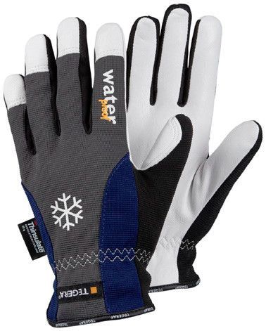 Lederhandschuh, 0,7-0,8 mm, Vollnarben Ziegenleder, Spandex, Thinsulate® 40g, Cat. II, Weiß, grau, blau, wasserdicht, wintergefüttert, für allgemeine Arbeiten