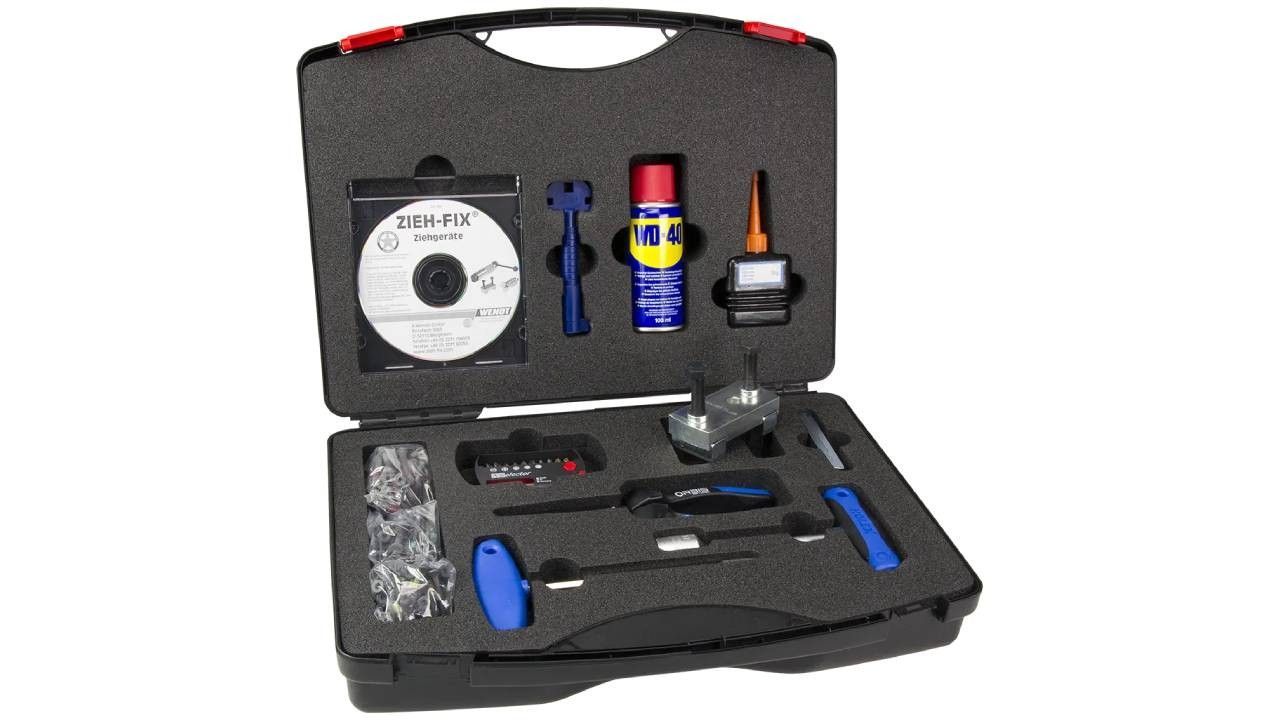 • Die Werkzeuge sind in einer Hartschaumeinlage übersichtlich angeordnet. • für Rundzylinder und Profilzylinder, axiales Kernziehen und Auseinanderreißen des Steges möglich