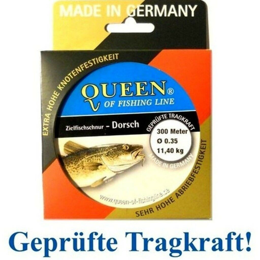 Zielfisch- Schnur Queen of Fishing Line Dorsch 0,35mm 11,4kg 300m! Durch eine sehr hohe Knoten- und Abriebfestigkeit sowie einer g eprüften Tragkraft wurde diese geschmeidige Schnur genau auf die hohen Anforderungen der Angler und auf ihre Zielfische gefertigt. Diese Schnur ist damit perfekt für ein