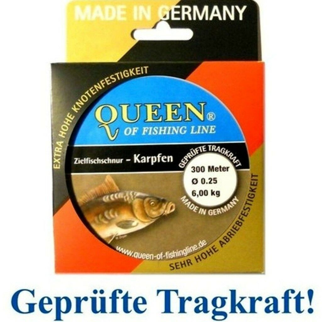 Zielfisch- Schnur Queen of Fishing Line Karpfen 0,25mm 6,0kg 300m! Durch eine sehr hohe Knoten- und Abriebfestigkeit sowie einer g eprüften Tragkraft wurde diese geschmeidige Schnur genau auf die hohen Anforderungen der Angler und auf ihre Zielfische gefertigt. Diese Schnur ist damit perfekt für ein