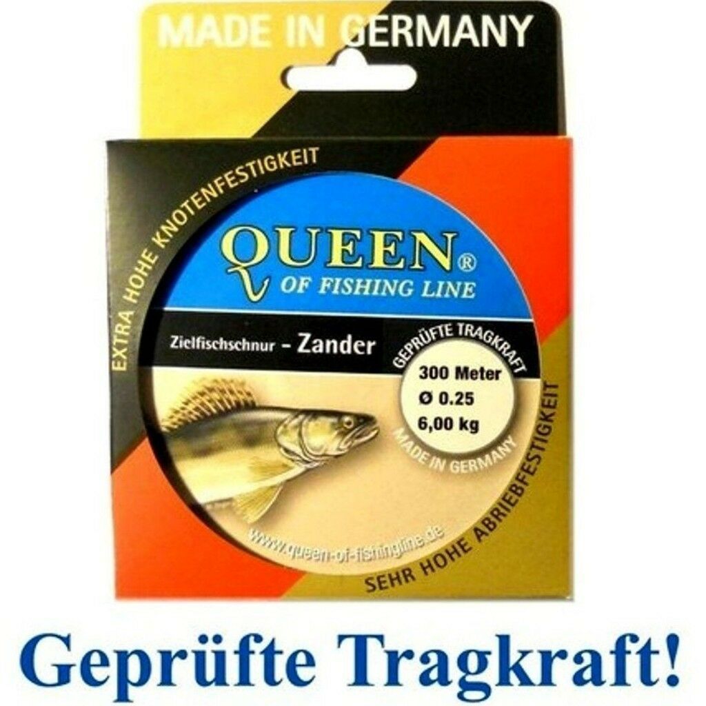 Zielfisch- Schnur Queen of Fishing Line Zander 0,25mm 6,0kg 300m! Durch eine sehr hohe Knoten- und Abriebfestigkeit sowie einer g eprüften Tragkraft wurde diese geschmeidige Schnur genau auf die hohen Anforderungen der Angler und auf ihre Zielfische gefertigt. Diese Schnur ist damit perfekt für eine