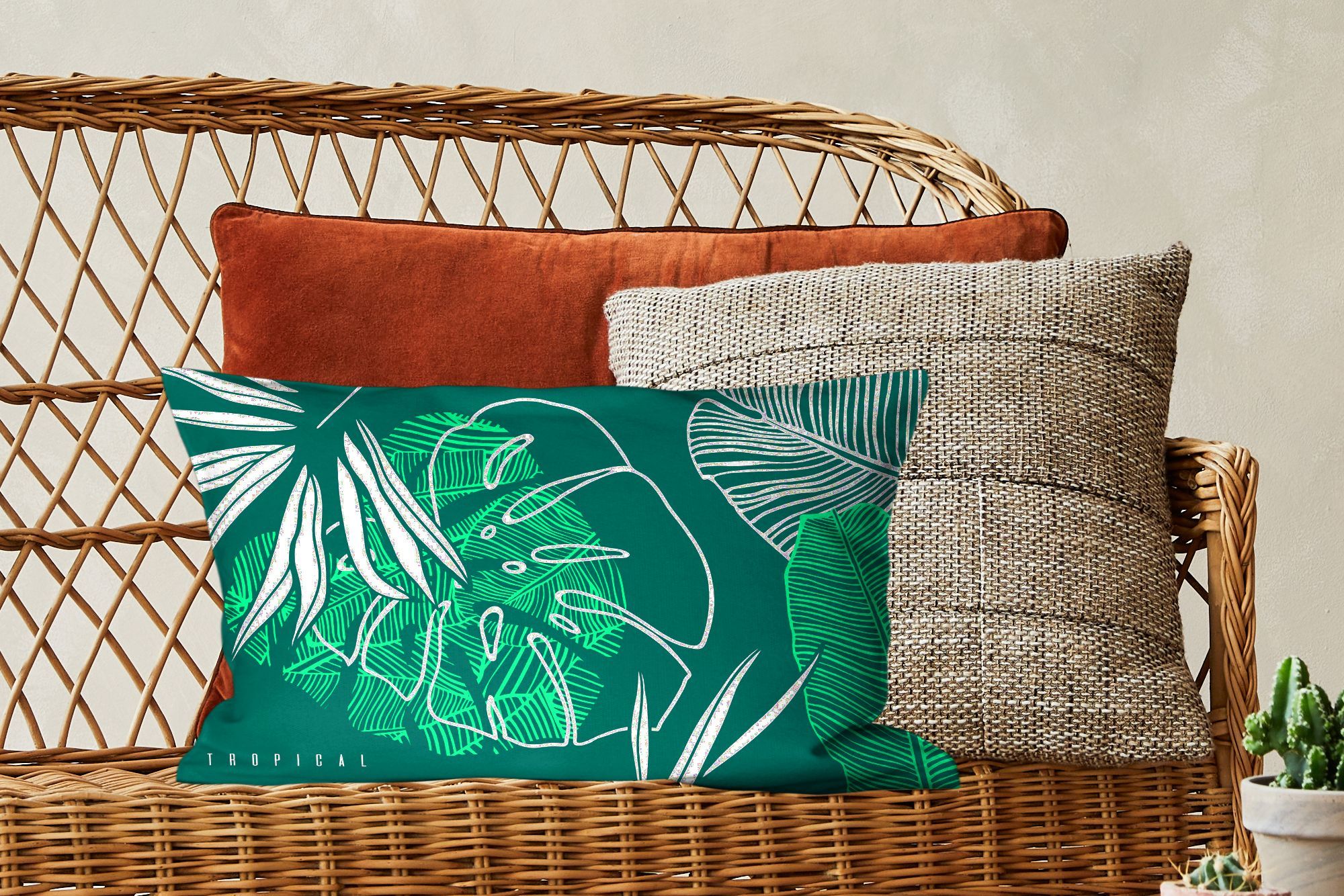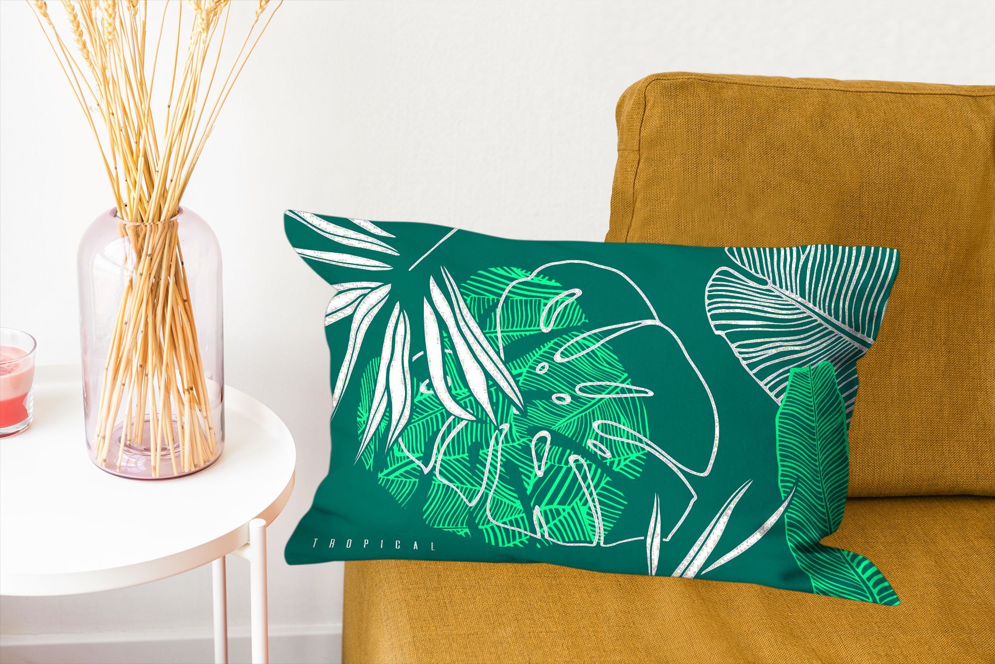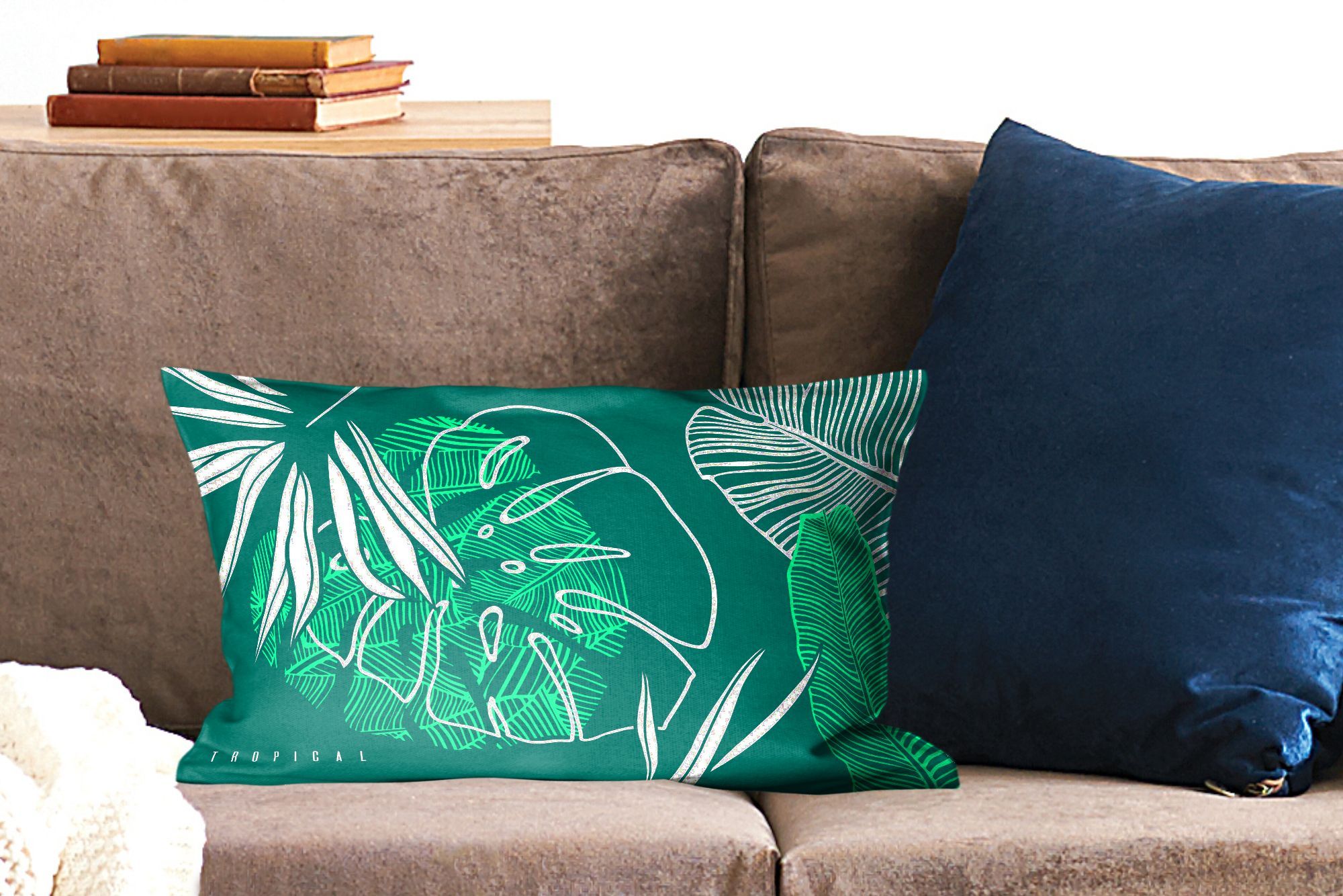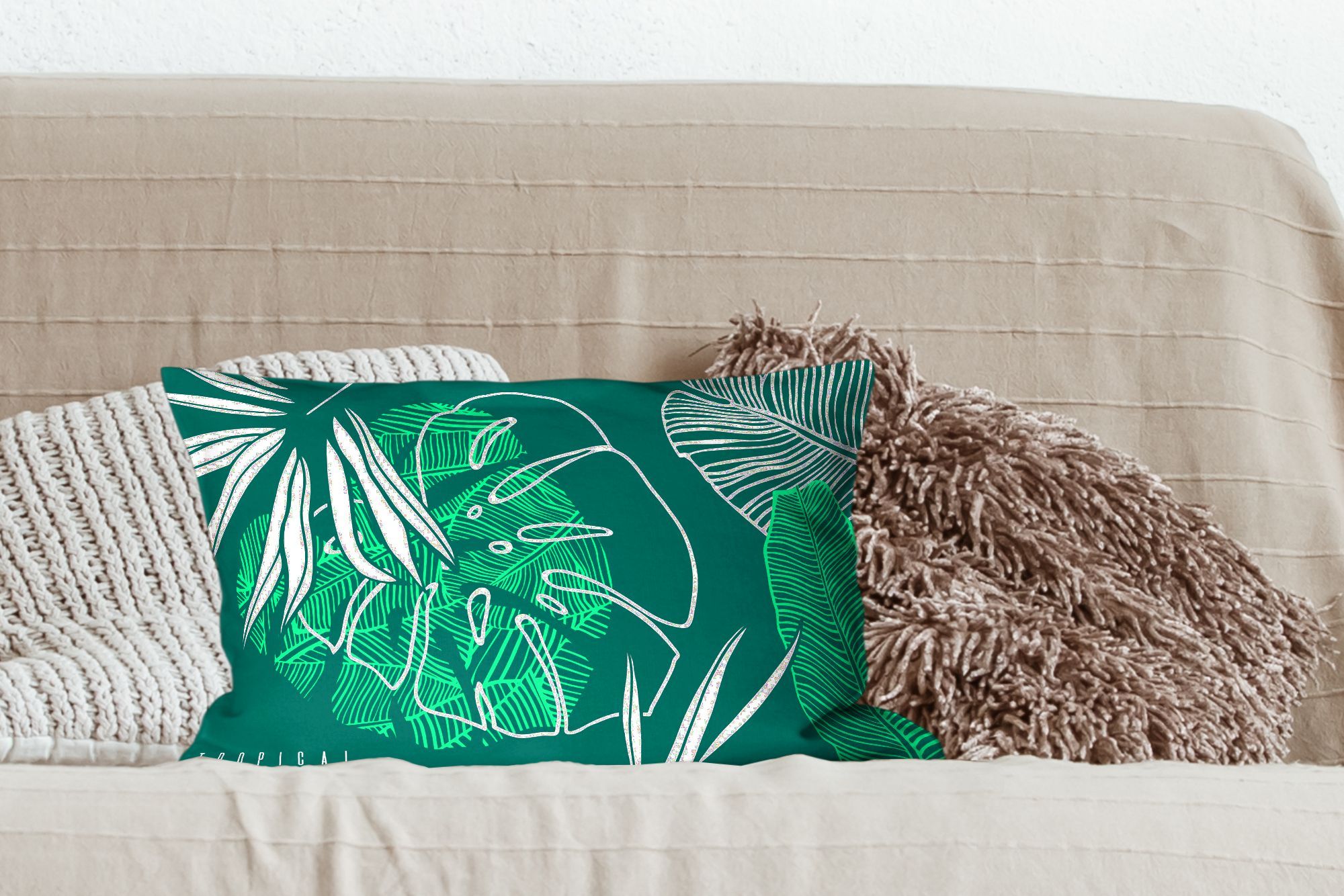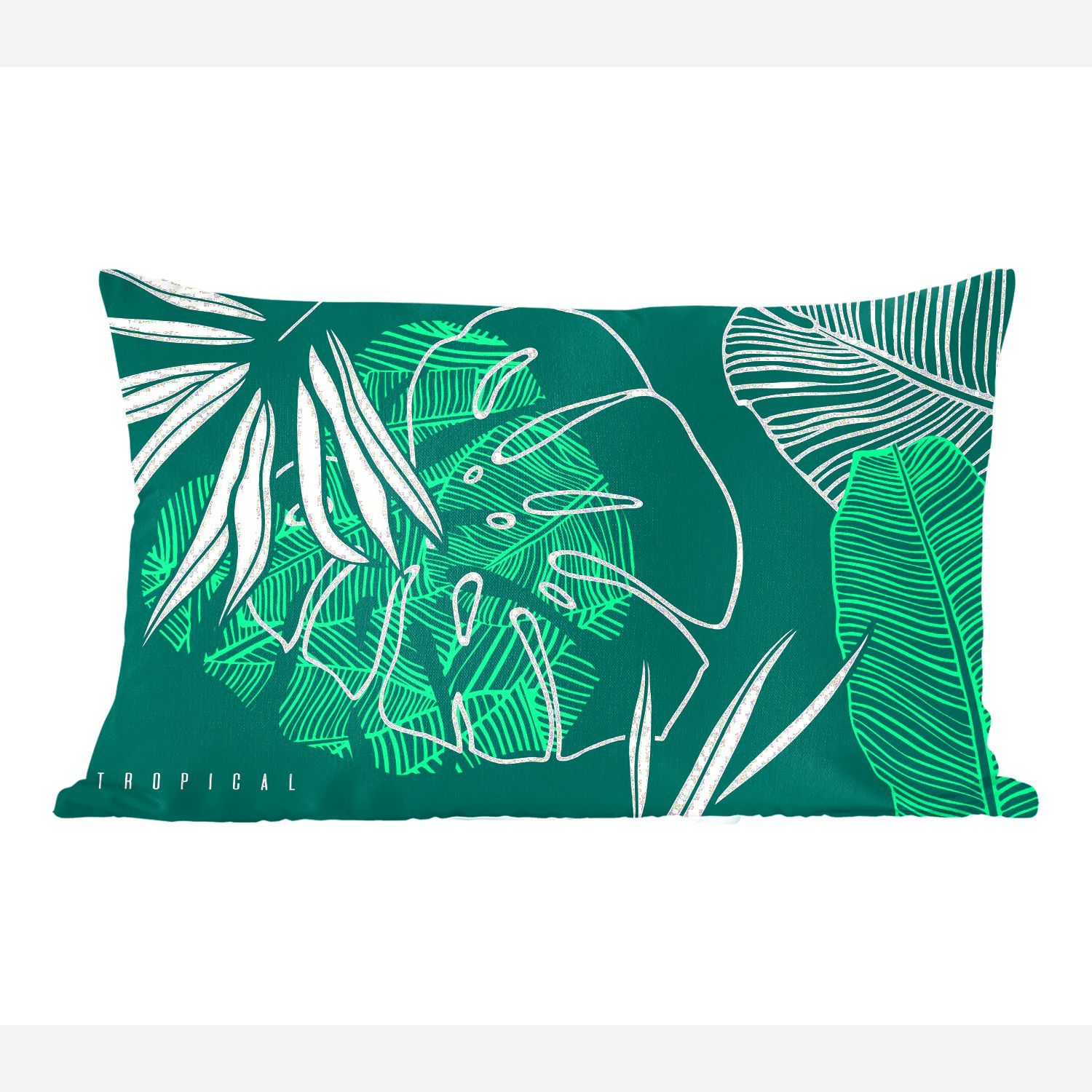Zierkissen - Sofakissen - Dekokissen - 50x30 cm - Dschungel - Blätter - Grün - Weiß
