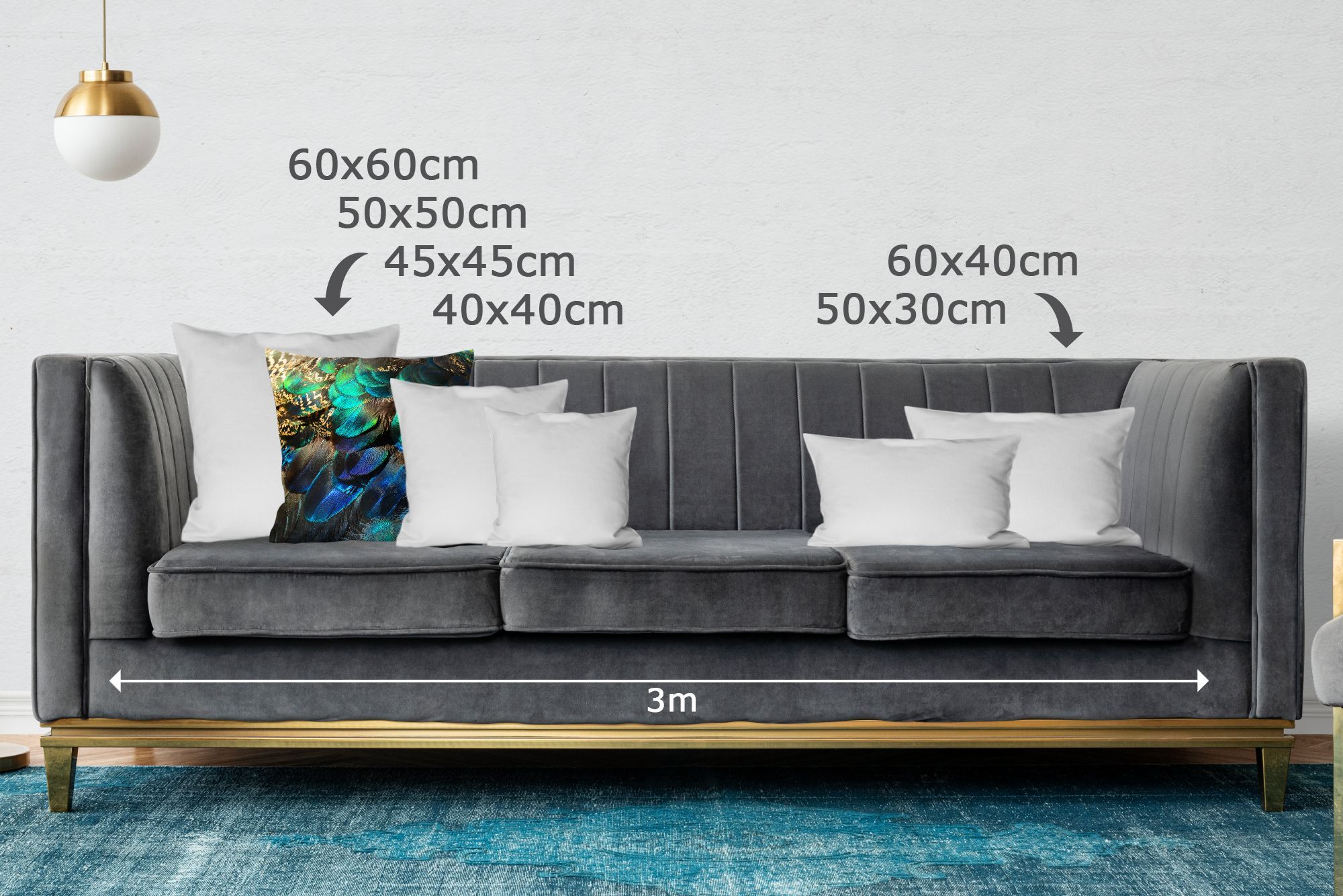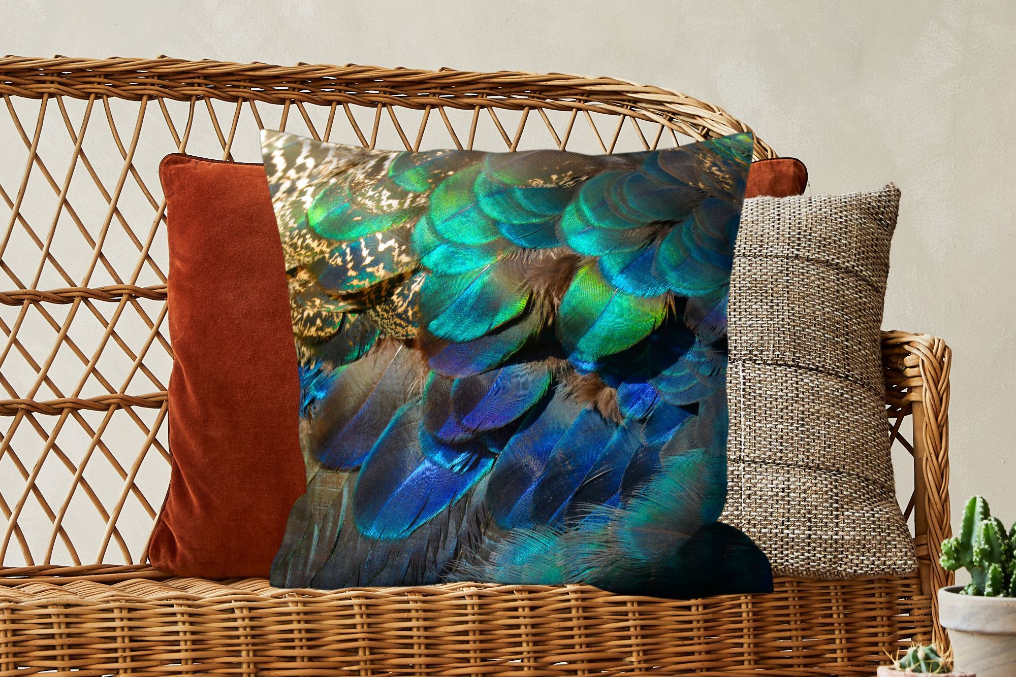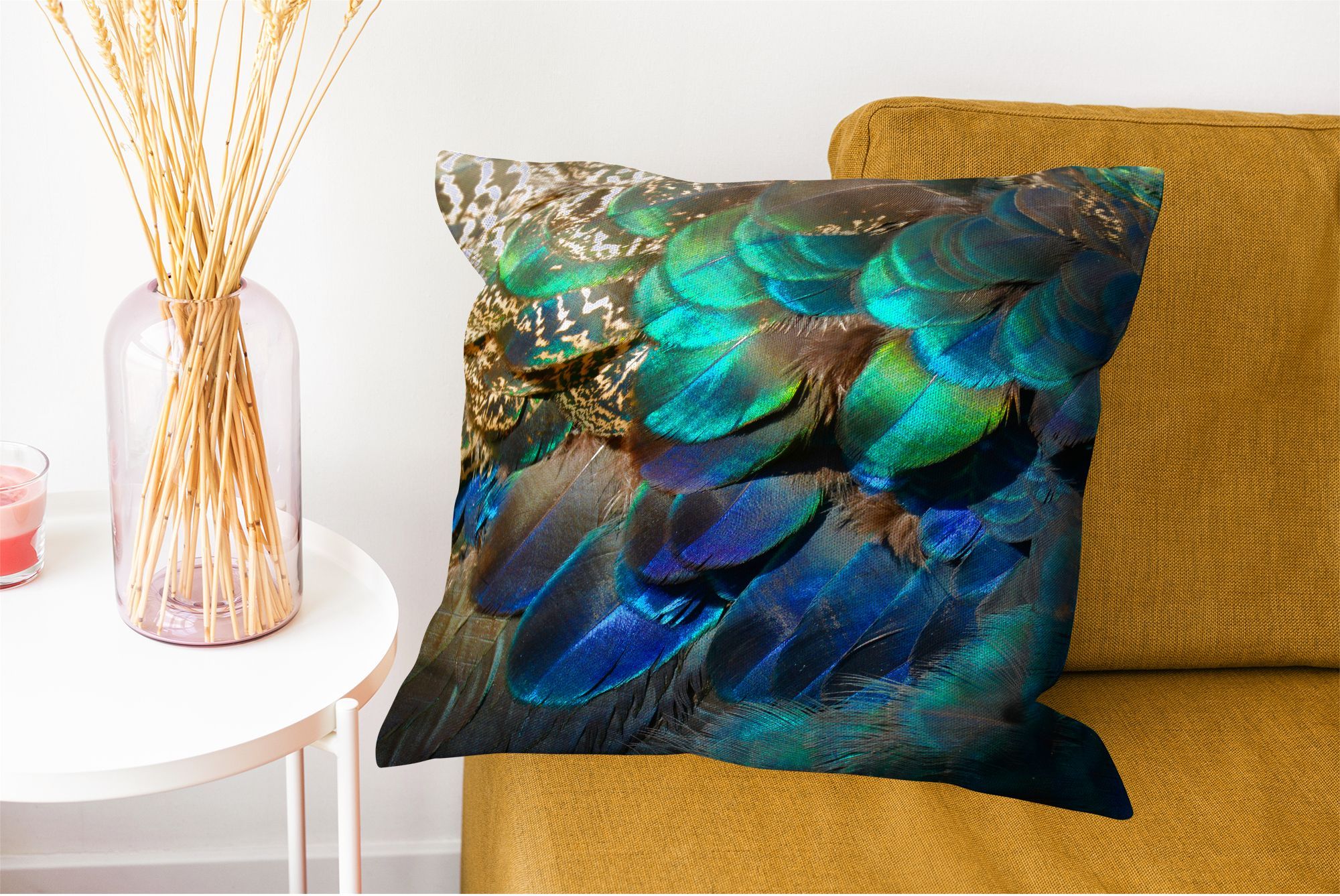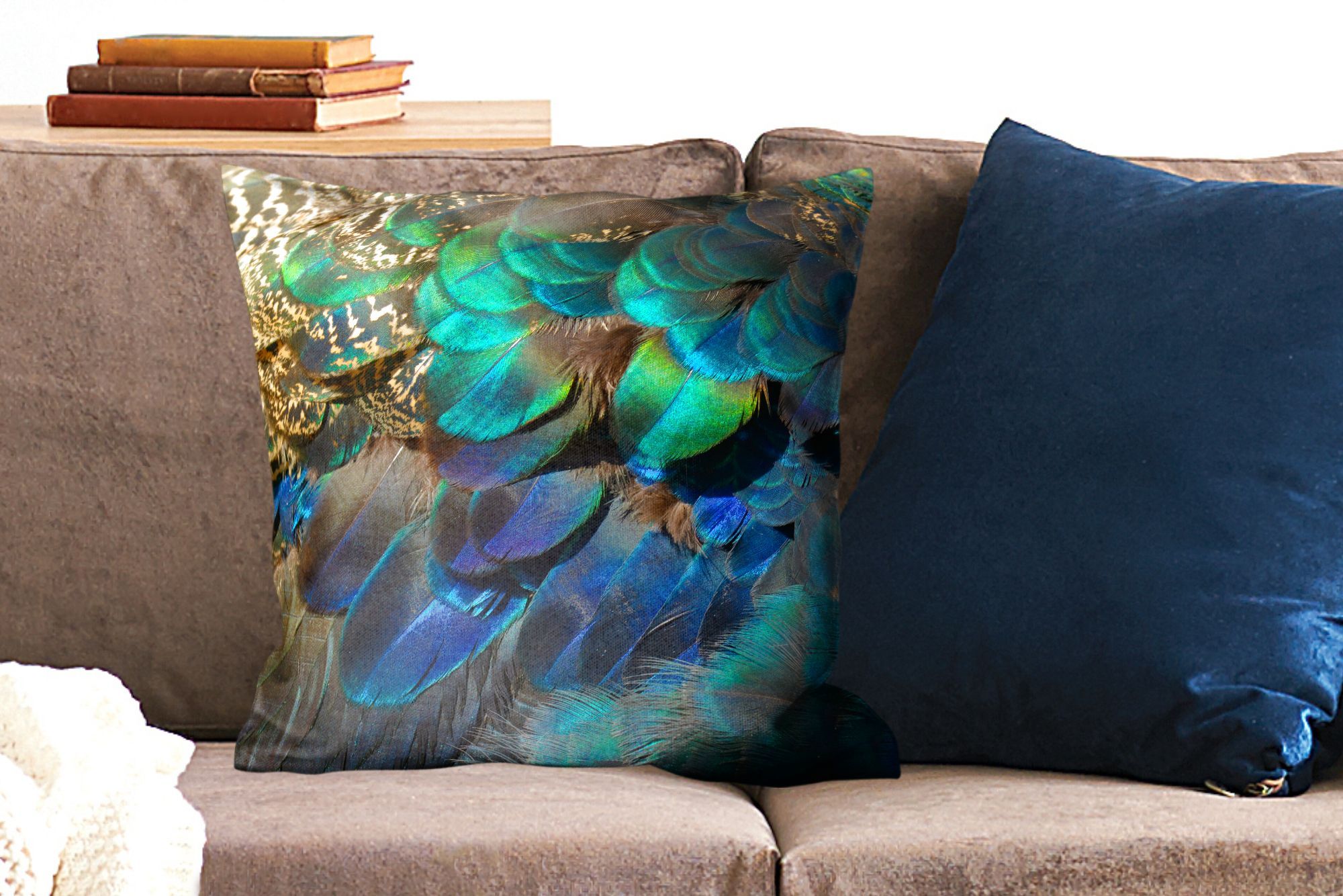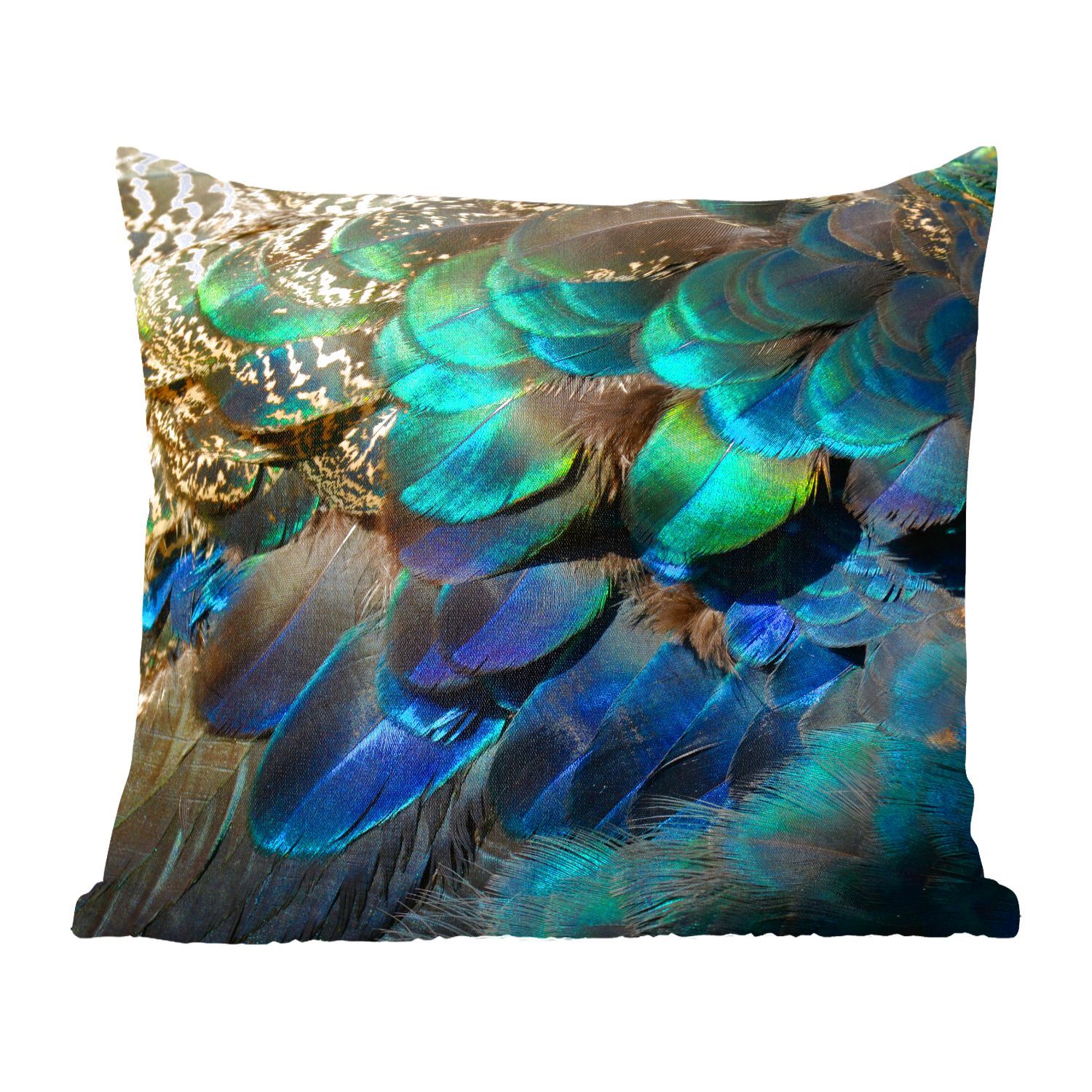 Zierkissen - Sofakissen - Dekokissen - 50x50 cm - Federn - Pfau