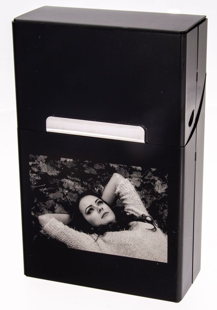 Zigarettenbox Aluminium schwarz mit Fotogravur