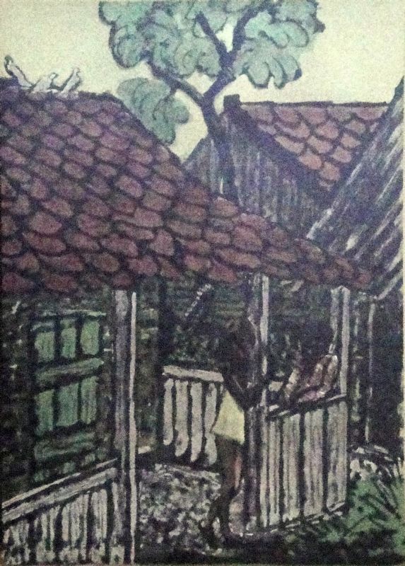 Zigeunermappe Otto Mueller: Zigeunerhütten mit zwei Kindern vor der Tür