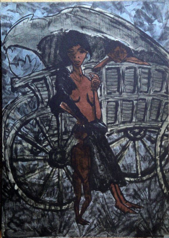 Zigeunermappe Otto Mueller: Zigeunerin mit zwei kleinen Kindern am Planwagen