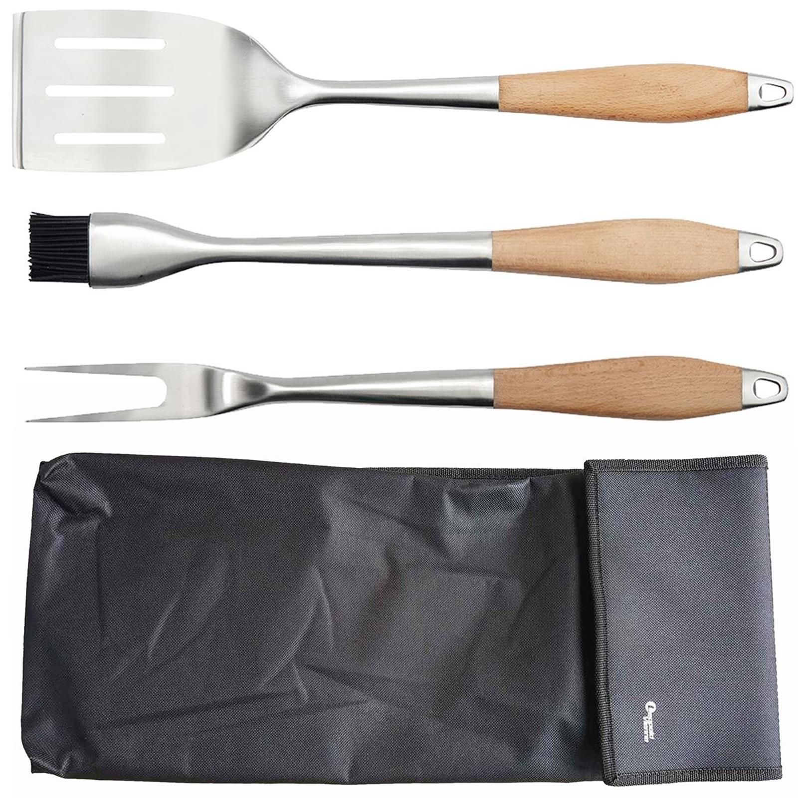 Leopold Vienna Zilverstad BBQ Grillbesteck 4-tlg. Edelstahl Besteck Set Holzgriffe & schwarzer Grill