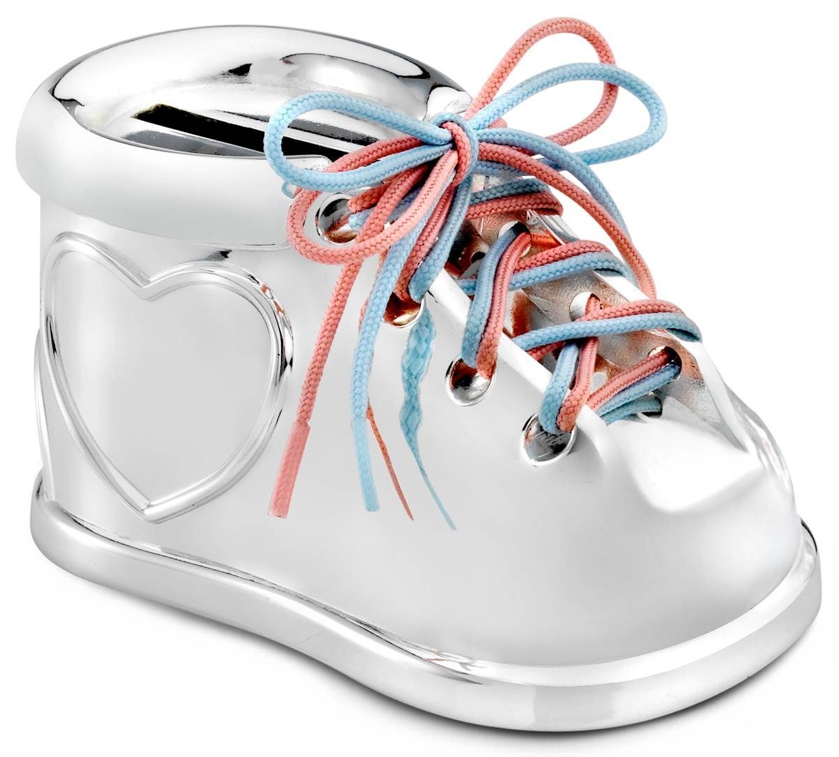 Zilverstad Zilverstad Sparbüchse Schuh versilbert Kinder Spardose blau-rosa Schleife Moneybox Sp