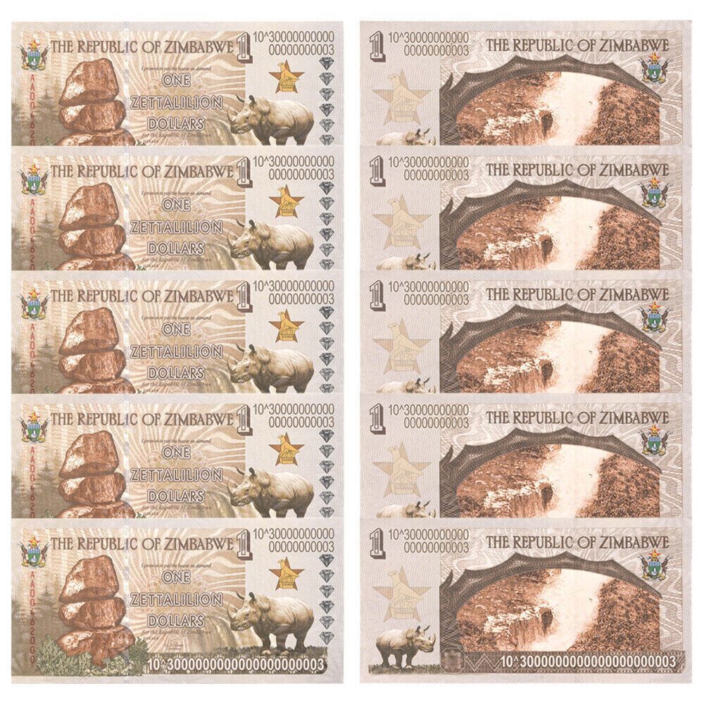 Zimbabwe/ Simbabwe/ One Zettalilion Dollars/5 Banknoten/ Bankfrisch/