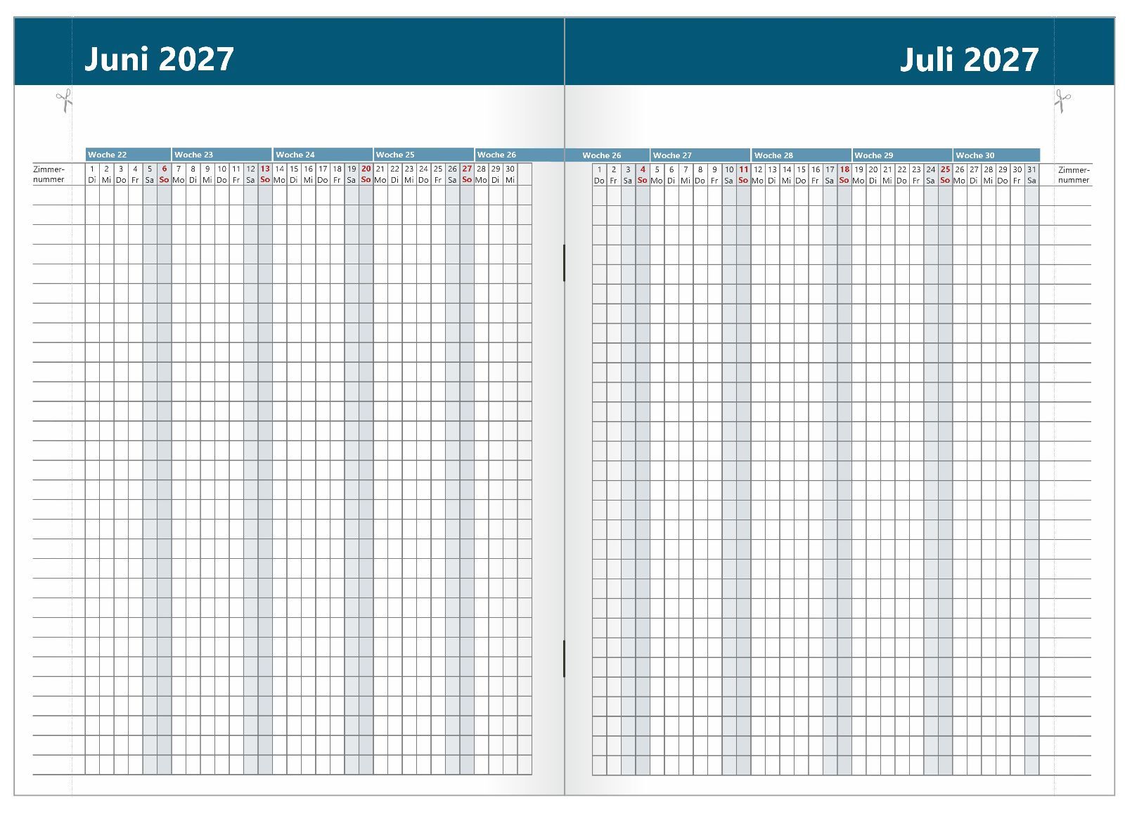Zimmerbelegungskalender 2027 Belegungsplan für Ferienwohnung Vermieter A4 Heft