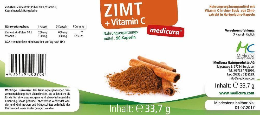 Medicura Zimtextrakt 10:1 - 90 Kapseln