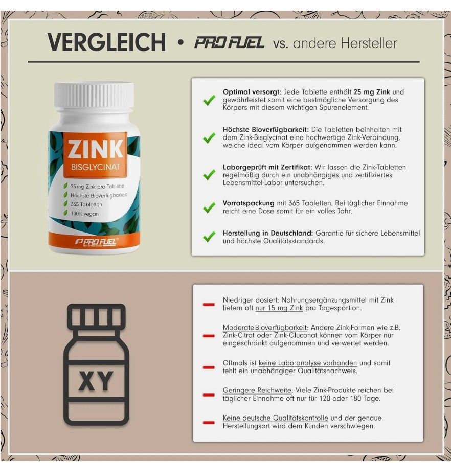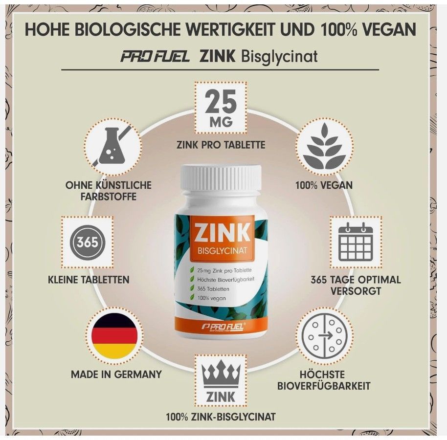 Euro HIGH-QUALITY ZINC: Our ZINC contains only high-quality zinc bisglycinate. Zinc bisglycinate is the form with the highest possible bioavailability. Euro 365 ZINC TABLETS: One container contains 365 tablets, which is enough for a whole year at one tablet per day. The container itself is made of b