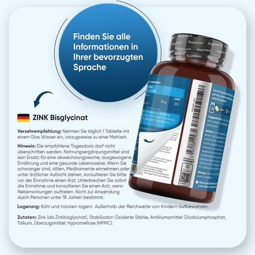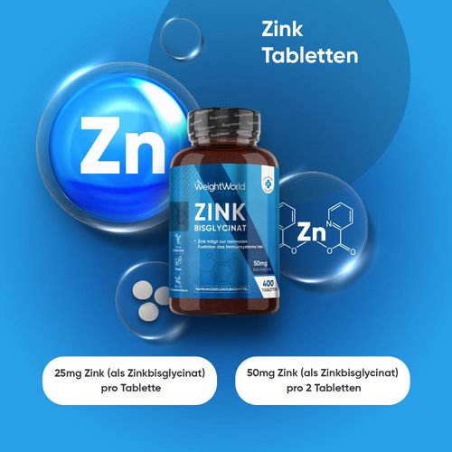 Zink 25mg - 400 Vegane Tabletten - Zink Bisglycinat - Höchste Bioverfügbarkeit