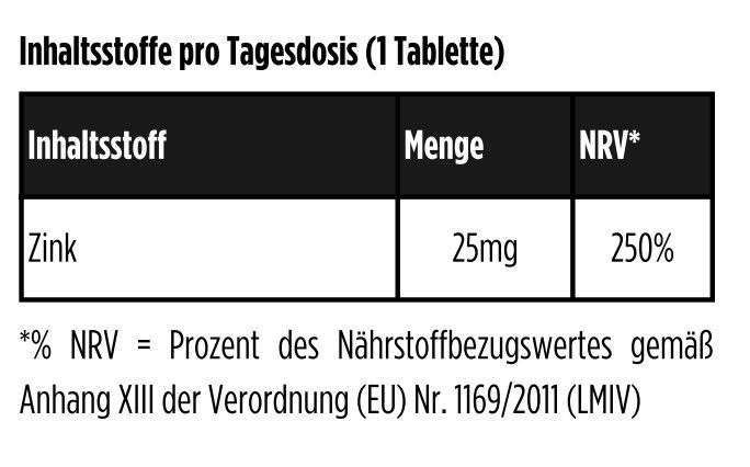 Zink Bisglycinat 25mg - 500 Tabletten (Aluminium Doypack)