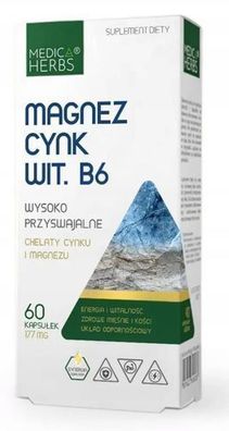 Medica Herbs Magnesium Bisglycinat Zink Chelat Vitamin B6 ZMA Komplex 60 Kapseln