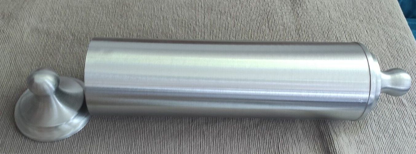 Titanzink Dokumentenrolle Dokumentenbox-Zeitkapsel Die Dokumentenbox aus Zink-Blech verschließt sicher Dokumente,Münzen und ähnliches für die Grundsteinlegung. Baulänge Rohr = 330 mm Baulänge gesamt = 470mm Durchmesser Durchschitt = 100 mm Blech Außenseite gebürstet Die Rolle ist auf einer Seite ber