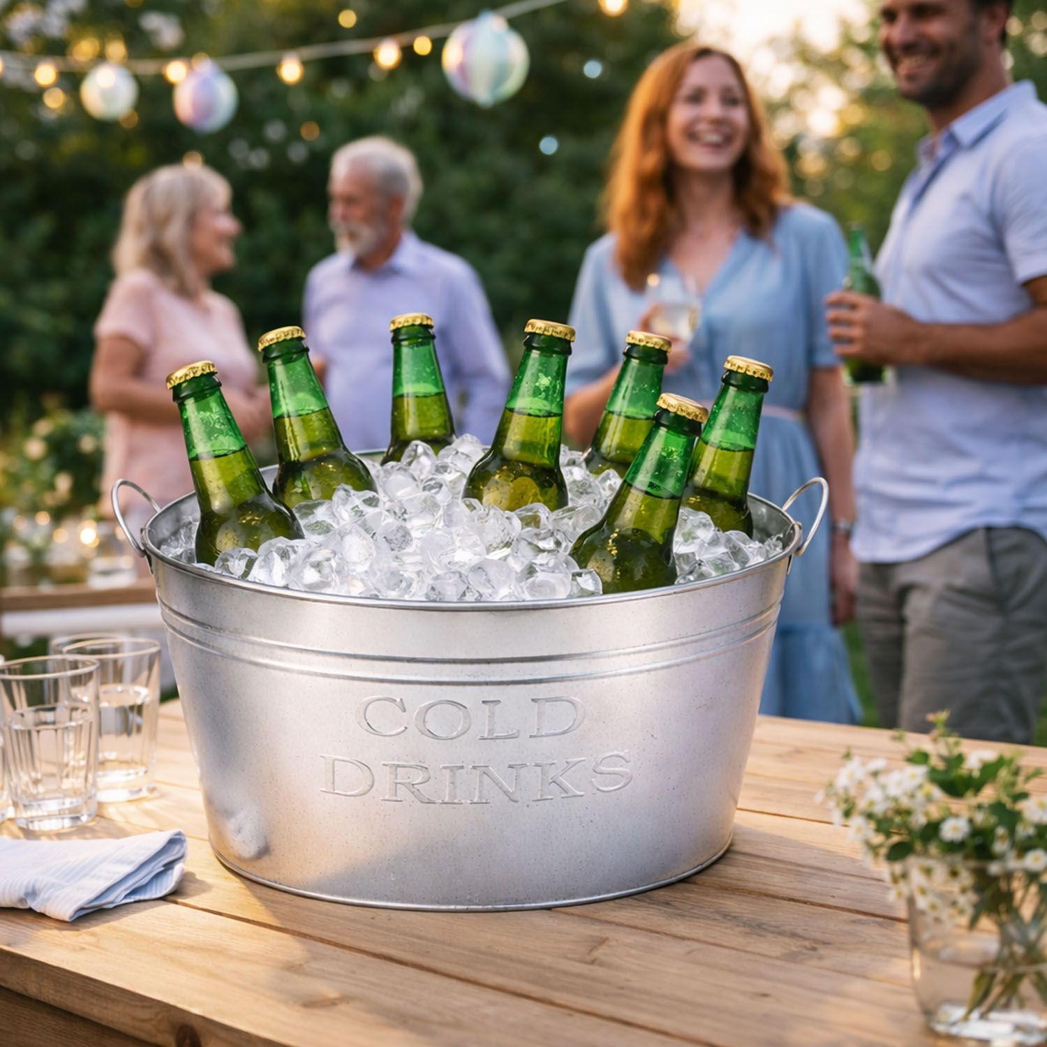 Zink Getränkekühler „COLD DRINKS“ 50 x 34 cm Vintage Zinkwanne Getränkewanne