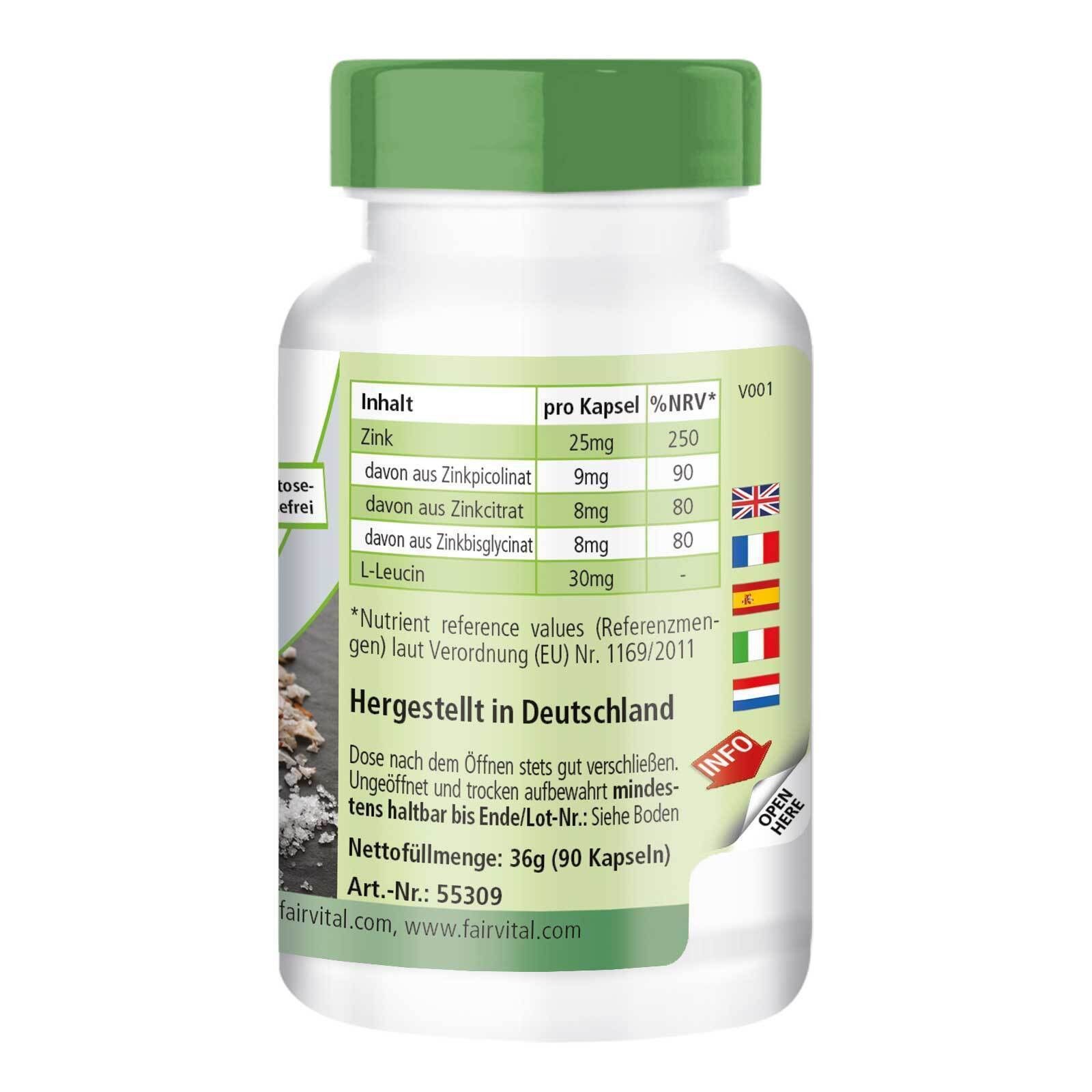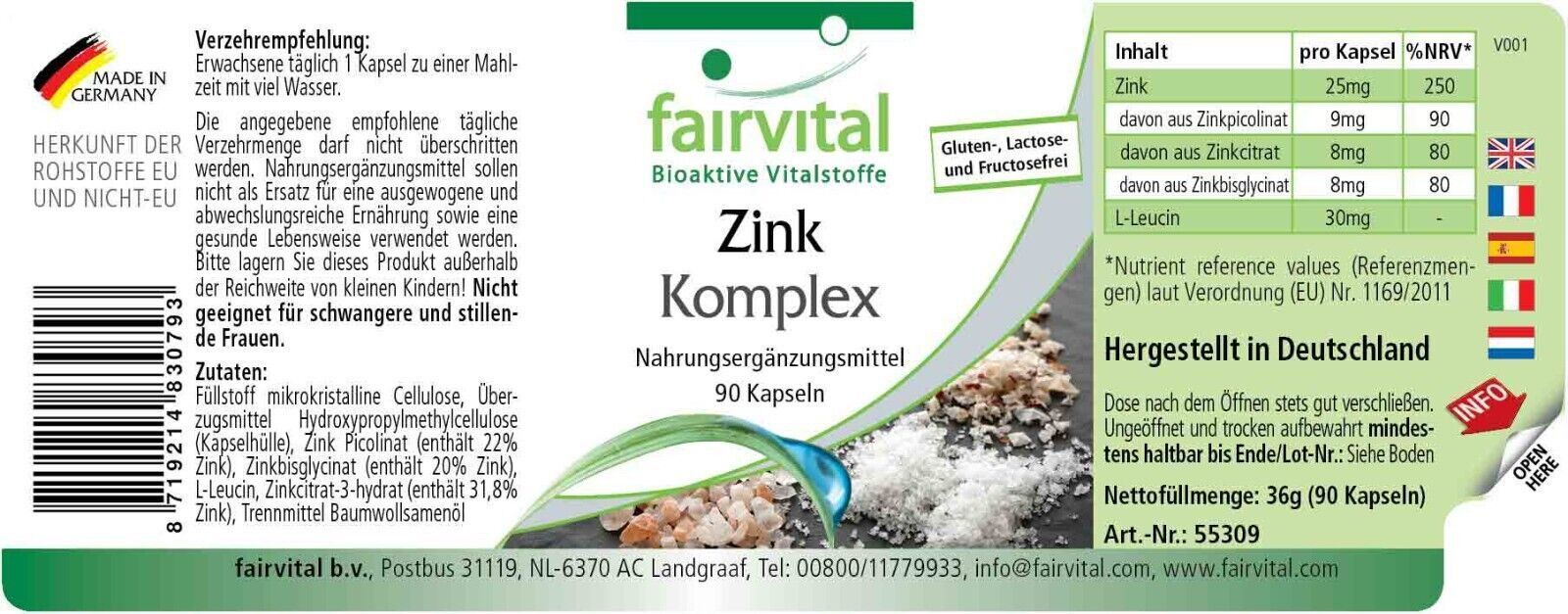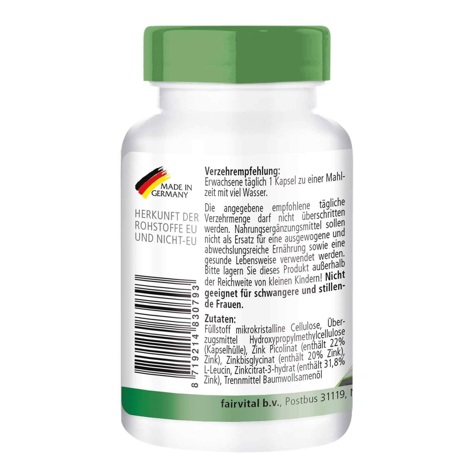 fairvital Zink Komplex - 90 Kapseln mit Zinkpicolinat, Zinkcitrat, Zinkbisglycinat - fairvital