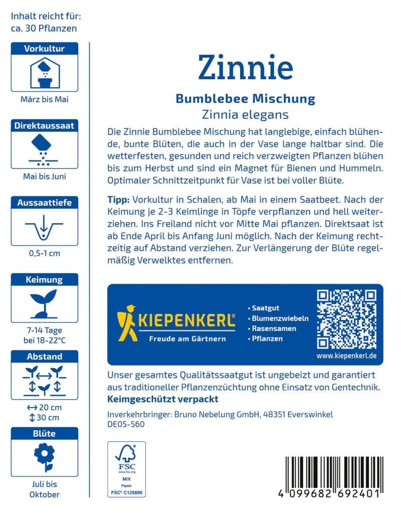 Kiepenkerl Zinnie Bumblebee Mischung, Regen- und Hitzefeste Beet- u Schnittzinnie
