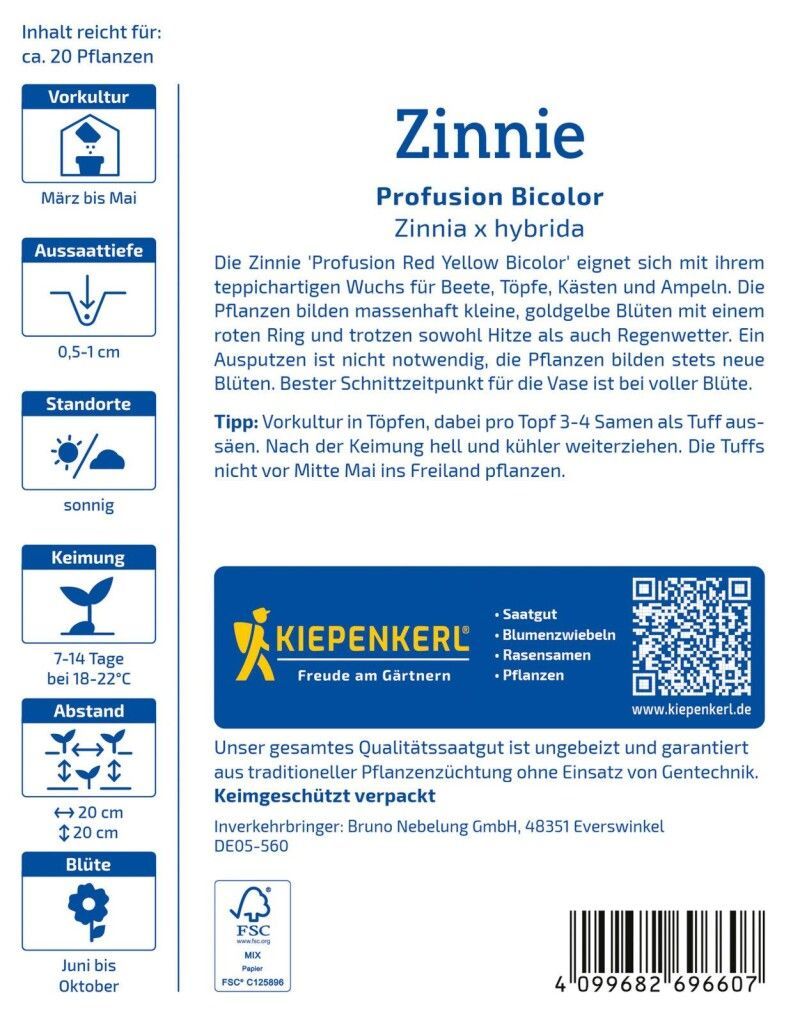 Kiepenkerl Zinnie Profusion Bicolor, Niedrige, blühfreudige Beet- u Balkonzinnie