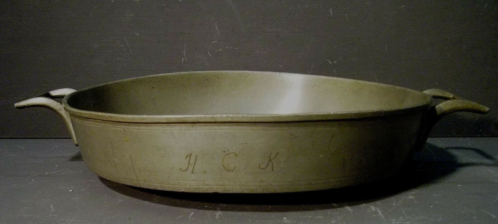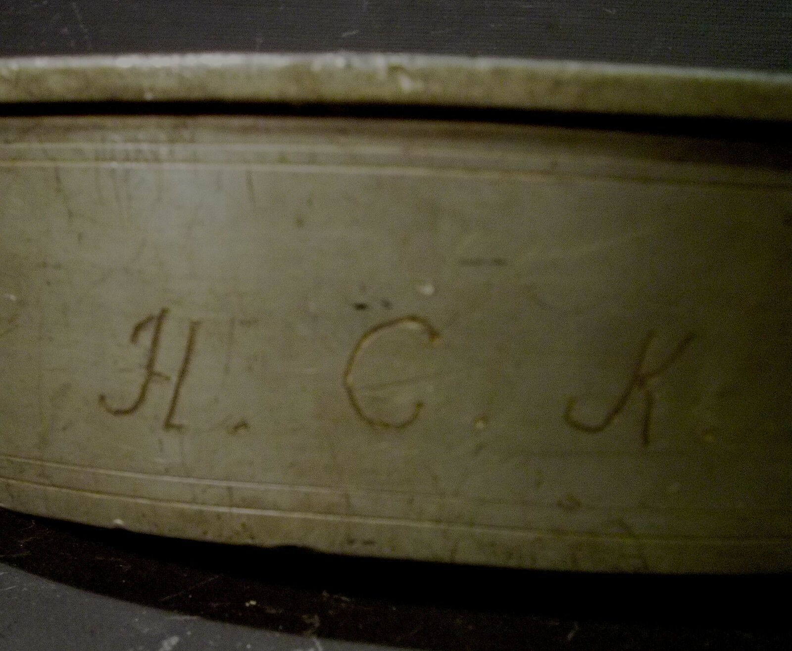 Zinnschale um 1800 (Barock). Inschrift: H.C.K . Ohne Marke. Maße: L 36, Durchschitt 28 cm. Antikes am Deich - Inh: Oliver Kipp-Trense G M T Sprache erkennen Afrikaans Albanisch Arabisch Armenisch Aserbaidschanisch Baskisch Bengalisch Bosnisch Bulgarisch Burmesisch Cebuano Chichewa Chinesisch (ver) C