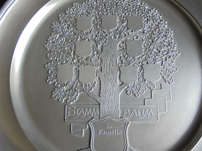 Zinnteller "Stammbaum" ungraviert, handgegossen, 95 % Zinn