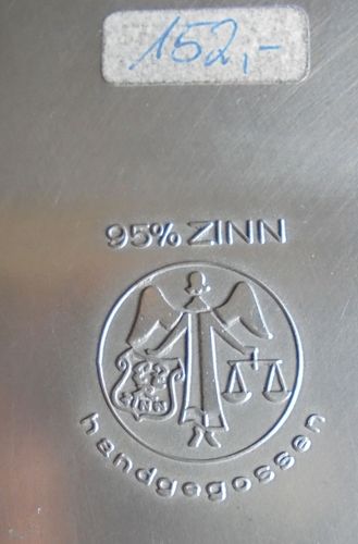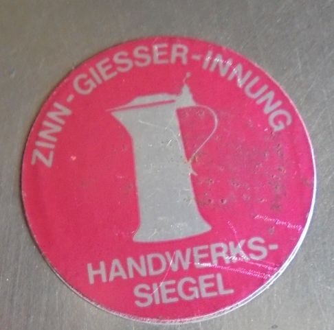 Wandteller, Zinnteller aus Echt Zinn (95 %) handgegossen mit Handwerkssiegel der Zinn-Giesser-Innung Durchmesser 27 cm mit geprägtem Stammbaum ungraviert