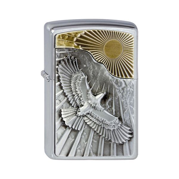 Zippo Zippo Benzin-Feuerzeug Eagle Sun-Fly Emblem, chrom gebürstet, unbefüllt