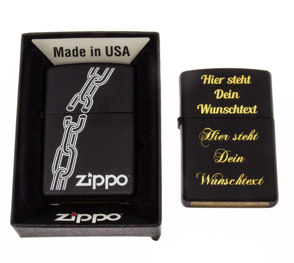 Zippo Zippo Feuerzeug broken Chain schwarz mit Gravur